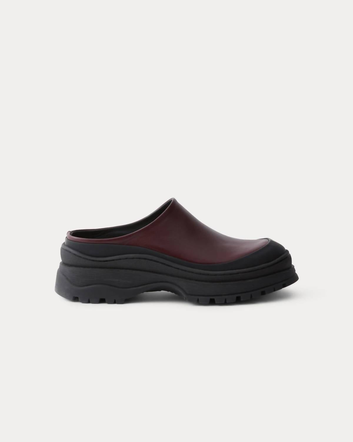 Stylish, comfy, and versatile. We can't find anything wrong with these. Step into style with the Barla Leather Mules by RACHEL COMEY, featuring a cherry-hued brush off leather for a sophisticated touch. Crafted from 100% drum dyed cow suede upper with a 100% cow leather lining, these mules promise durability and comfort. Designed in Portugal, the lightweight construction showcases a molded tread outsole with a chunky 55MM platform heel for a modern, minimalist appeal. Ideal for winter travels or Valentine’s Day outings, these round-toe mules offer a medium width fit.