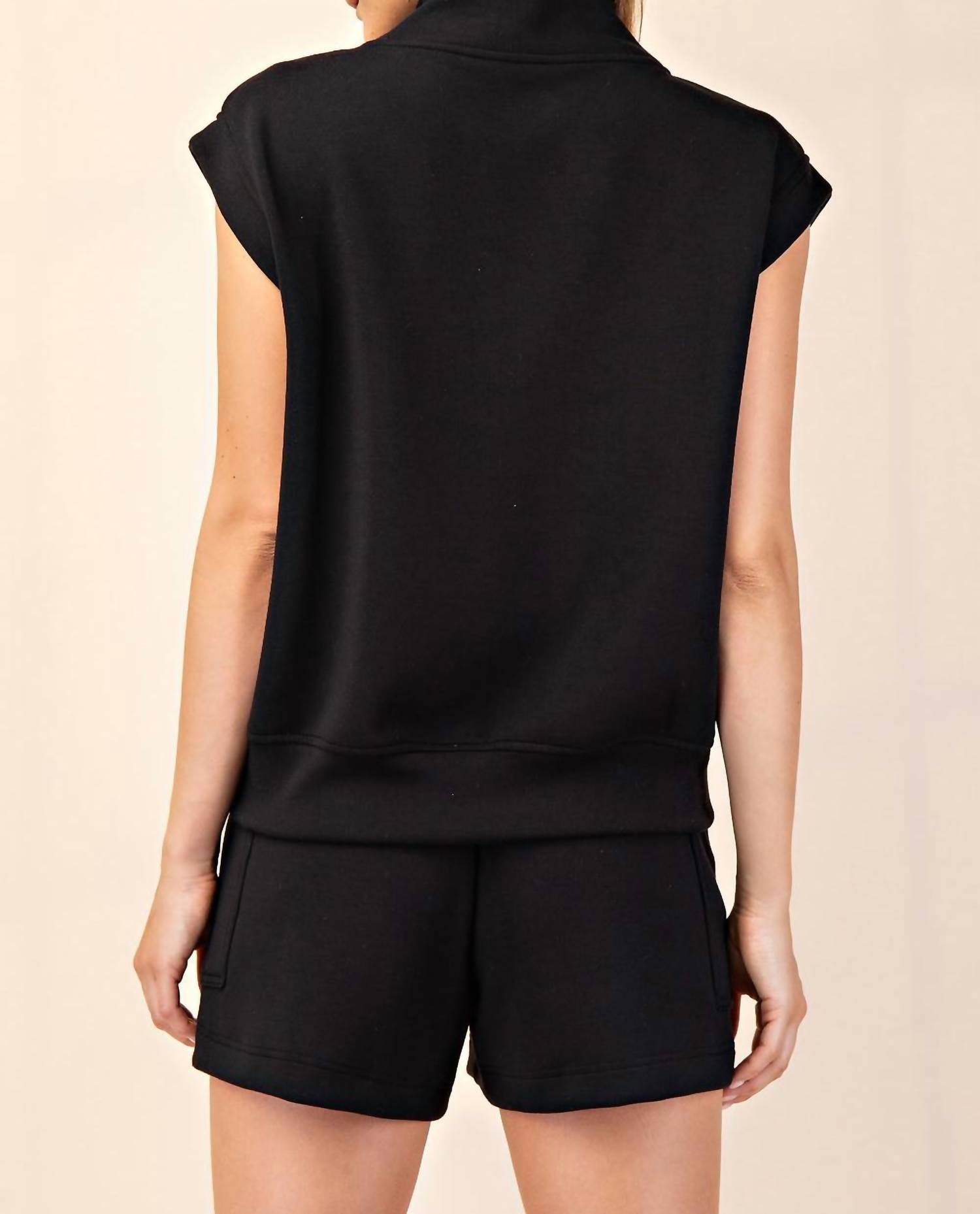 A versatile blouse that works from desk to dinner! Discover the Polly Sleeveless Top by RAE MODE, a sophisticated addition to your activewear collection. Crafted with our signature silky smooth and lightweight fabric, this black solid top offers a relaxed fit and four-way stretch for unparalleled comfort. Featuring a V-neck design and convenient pull-on closure, it's perfect for summer workouts or casual athleisure outings. Ideal for layering or standalone wear, this versatile piece is your go-to for effortless style.
