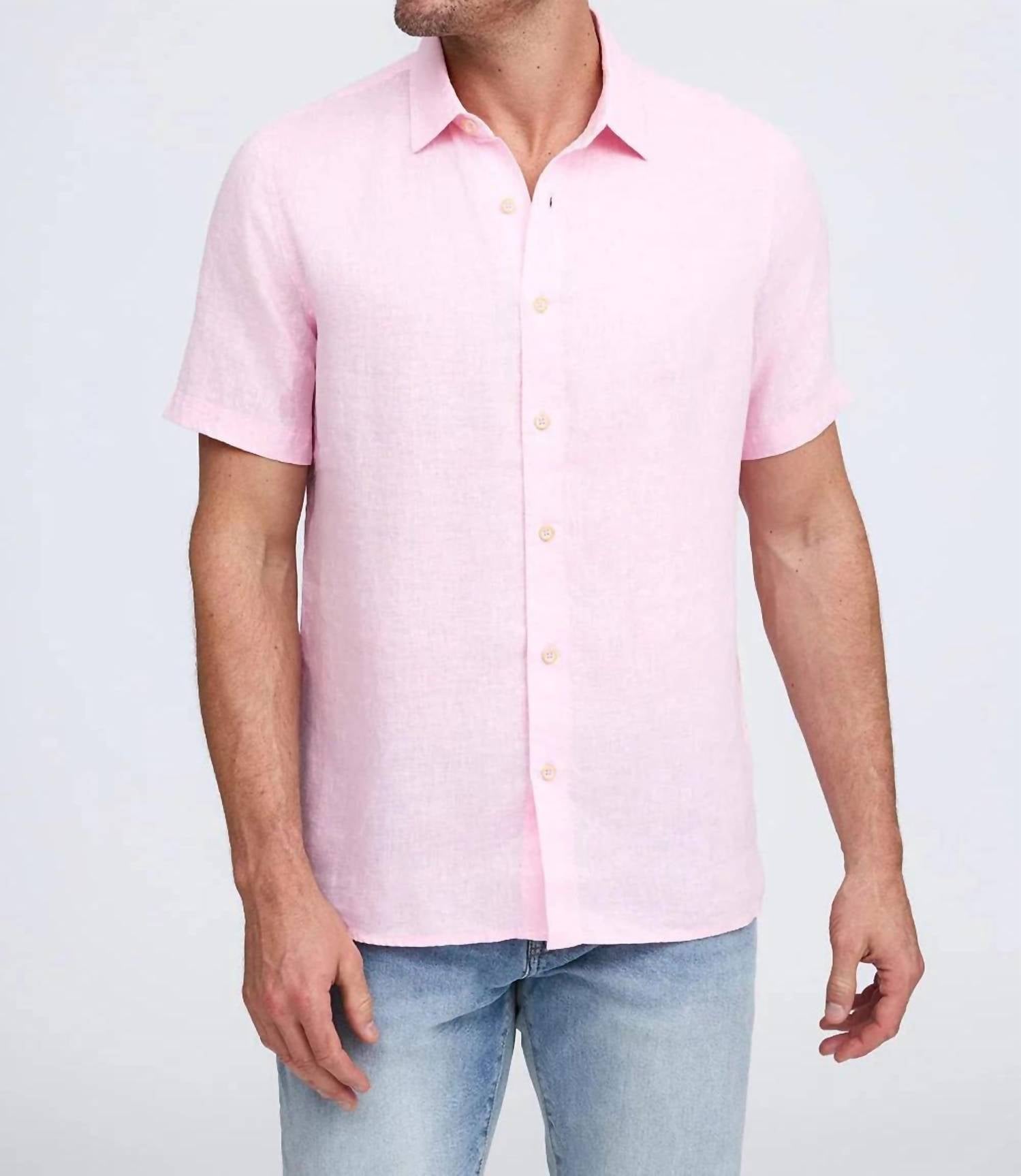 Introducing The Bryce Short Sleeve Linen Shirt by Raffi, a must-have for spring with a sun-soaked charm in solid pink. Crafted from 100% linen, this shirt offers a relaxed and carefree vibe, perfect for any casual church gathering. With a classic fit and collar neckline, the button closure adds a touch of sophistication. Enjoy easy maintenance and style with this effortless piece ideal for a summer state of mind.