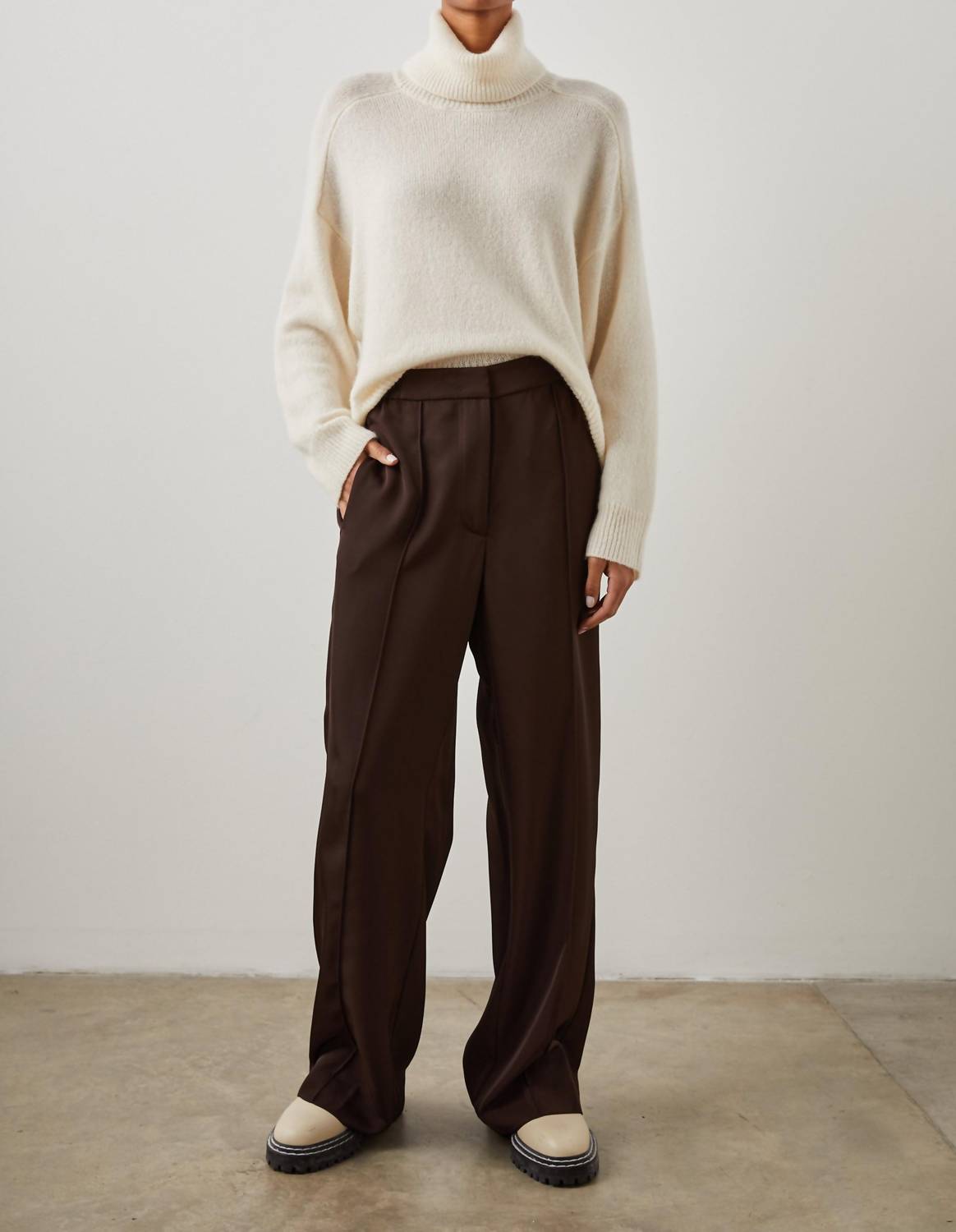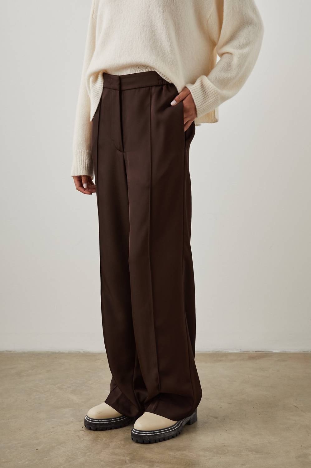 A straightleg pant that workes season after season. Dress these up with your favorite blouse or keep it casual with your go-to tee. Enhance your wardrobe with the Alta Straight-leg Pants by Rails, crafted in espresso-colored 100% polyester for a touch of sophistication. These regular fit trousers offer a high-rise waist with a 12¼" rise and a 31" inseam, perfect for an elegant straight-leg silhouette. Featuring convenient pull-on closure, the pants are designed with elasticized side panels and vertical pleats to ensure both comfort and style. Care instructions recommend dry cleaning to maintain their pristine appearance.