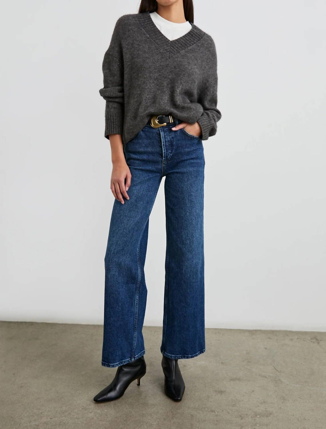 You'll be reaching for this comfy and classic v-neck sweater all season long. Elevate your wardrobe with the Women's Gisella Sweater by Rails, a sophisticated addition in a striking Thunder color perfect for any vacation-ready look. Crafted from a luxurious cashmere blend that includes 54% Wool, 23% Cashmere, and 23% Silk, this solid-patterned sweater features a flattering V-Neck design with long sleeves and binding at the bottom hem. Designed for a standard fit, it has a pull-on closure and is imported with a front body length measuring 25" (size Small). Care instructions recommend dry cleaning and cool ironing if needed—perfect for those seeking minimalist style in comfort.