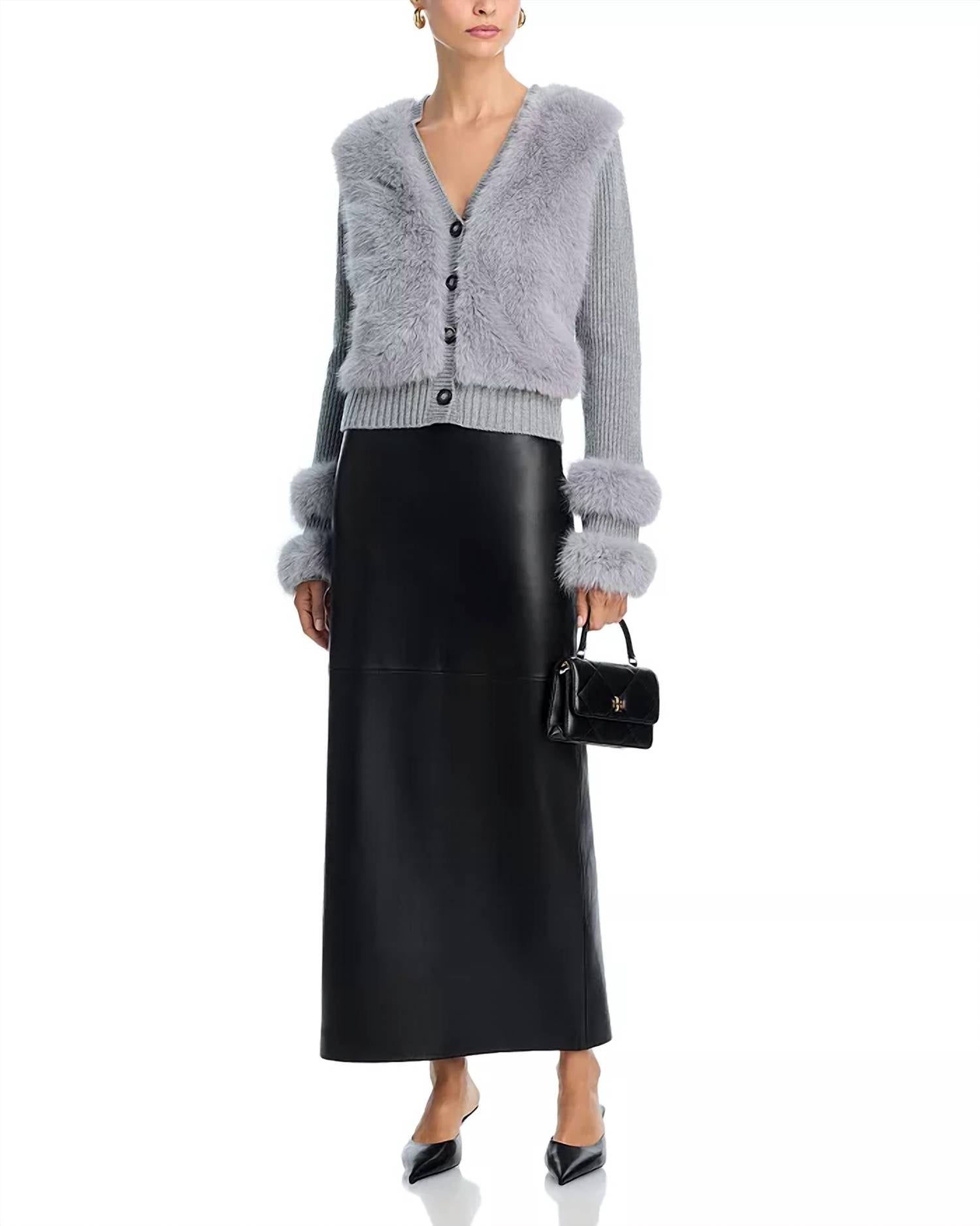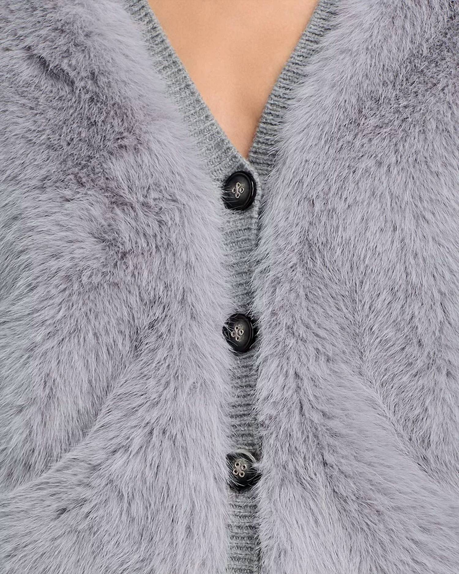 This cardigan will be a sweater-rotation favorite. Elevate your wardrobe with the Ramy Brook Vivietta V Neck Cardigan, a Heather Grey essential designed for understated elegance. This women's wool blend cardigan features long sleeves adorned with faux fur trim at the cuffs, adding a luxurious touch. Crafted with a composition of 55% Wool, 25% Nylon, and 20% Cotton with faux fur panels made from 100% Polyester, it offers a relaxed fit that stays true to size. Closure: Front button closure. Origin: Imported. Care: Hand wash or dry clean. Perfect for winter travel, this piece embodies the quiet luxury trend.