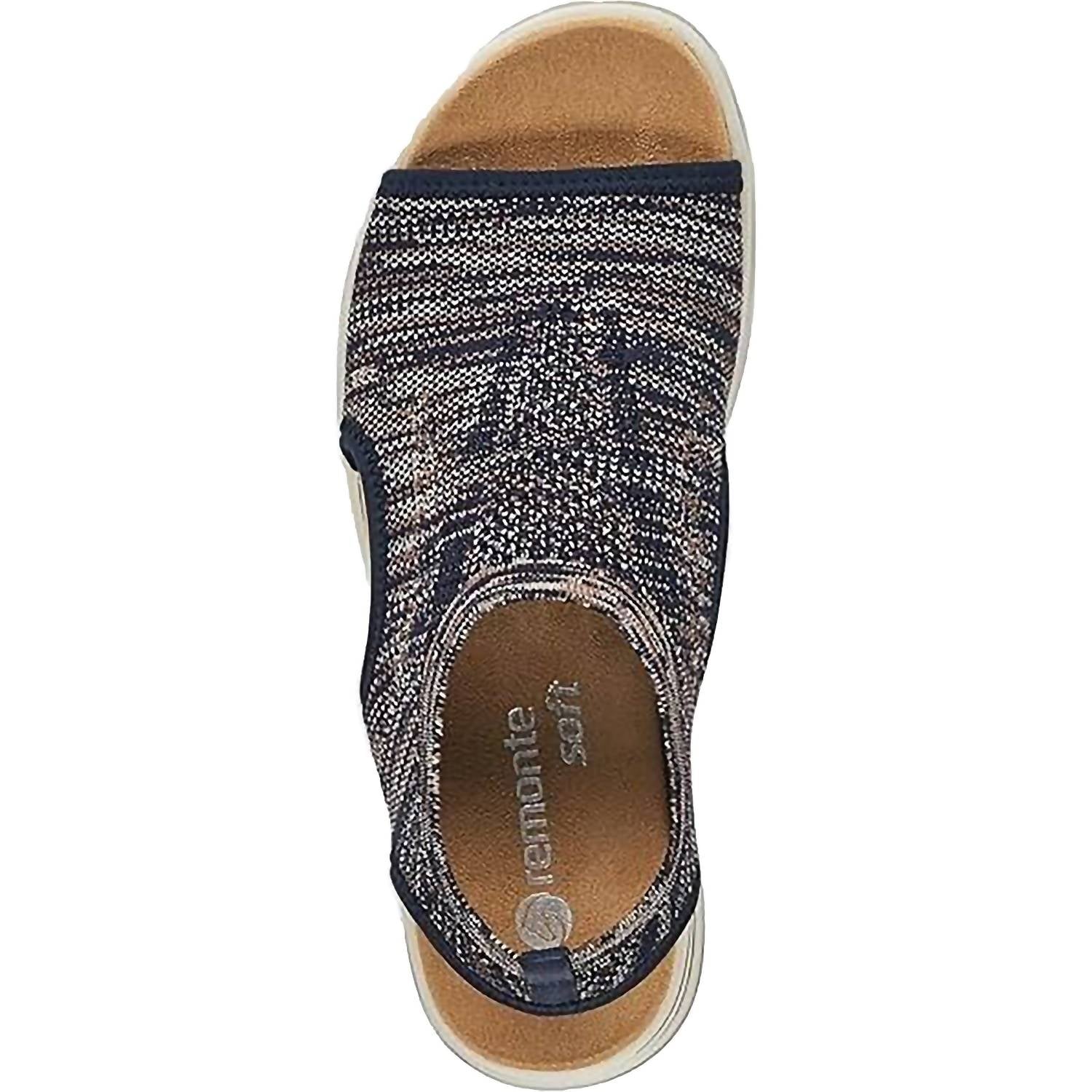 Meet the Women's Jocelyn 55 Walking Sandal by Remonte, a chic Boho option designed to keep you comfortable and cool. This sandal features a stretchy knit textile upper with open toe and cut-away panels for better ventilation. With slip-on styling and a wedge heel height of Low (1 1/4"–2"), this sandal offers seamless wearability. Ideal for summer travel and perfect as a Mother's Day gift, it comes with a removable insole and a durable polyurethane outsole.