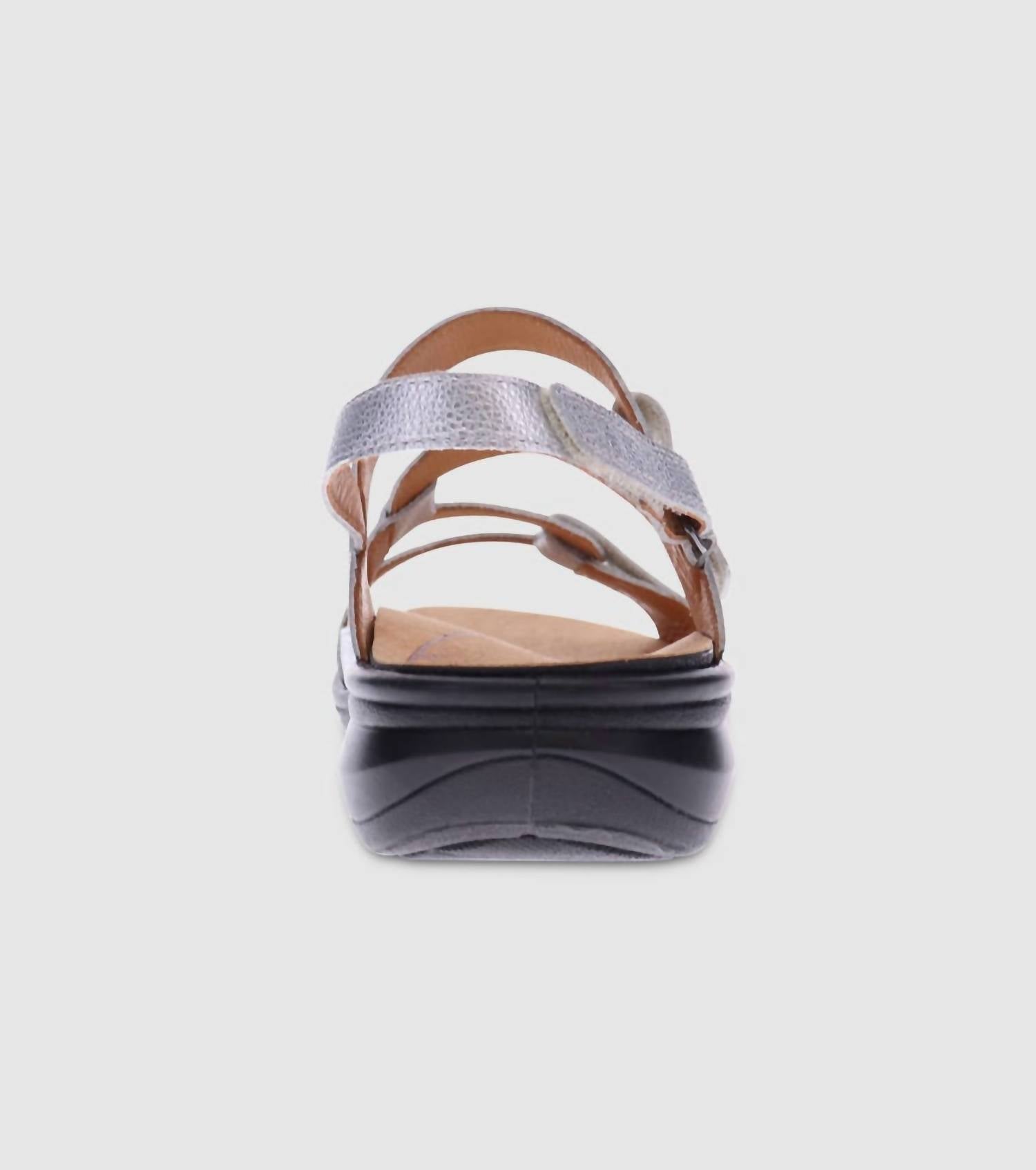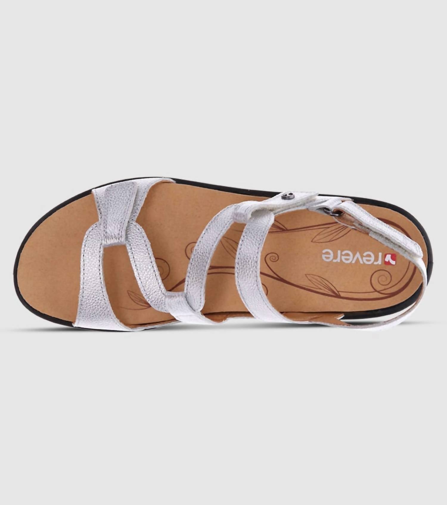 Flowy dresses, cropped pants, and even jumpsuits... this sandal works with them all! Meet the Women's Miami Sandals by Revere, a sophisticated choice in elegant Pearl Patent. Featuring adjustable hook-and-loop straps and crafted from premium leather uppers and linings, these sandals ensure both style and comfort. The removable comfort footbed, complete with built-in arch support, allows for custom orthotics if needed. Designed with a slip-resistant outsole and matching strap extensions, these sandals offer a tailored fit and stability for every step.
