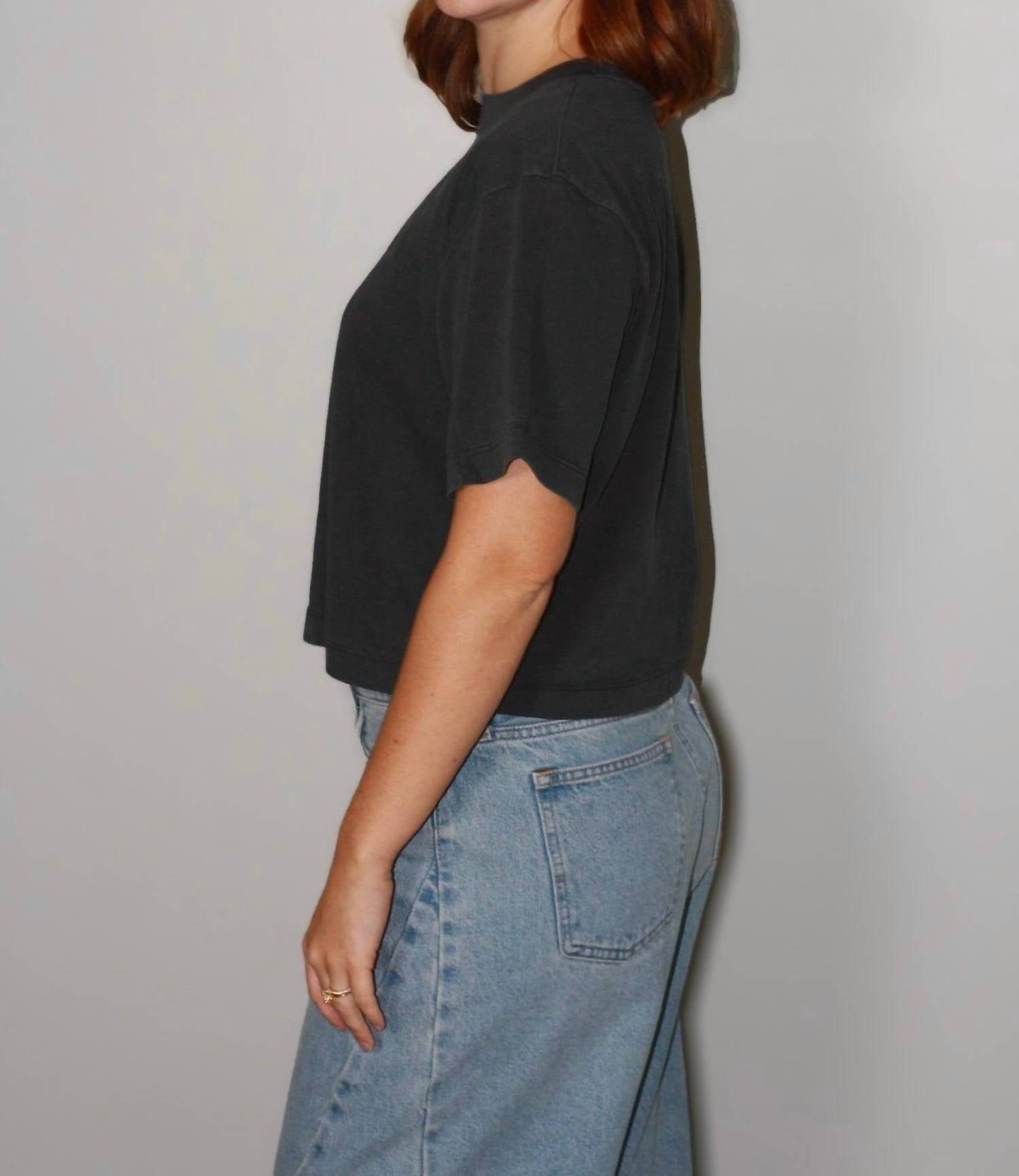 This classic, short sleeve tee will be your go-to staple this season and beyond. Discover the Wren Tee by Richer Poorer in a chic bone color—this women's short sleeve top is a must-have for minimalist wardrobes. Crafted from 100% cotton, it offers a relaxed silhouette and flattering cropped length, paired with a drop shoulder for an effortlessly slouchy look. Originating from Guatemala, it features a convenient pull-on closure. Caring for this solid tee is simple: machine wash cold with similar colors, tumble dry low, and cool iron if needed. Model Eva, who stands 5’5”, is wearing a size small.