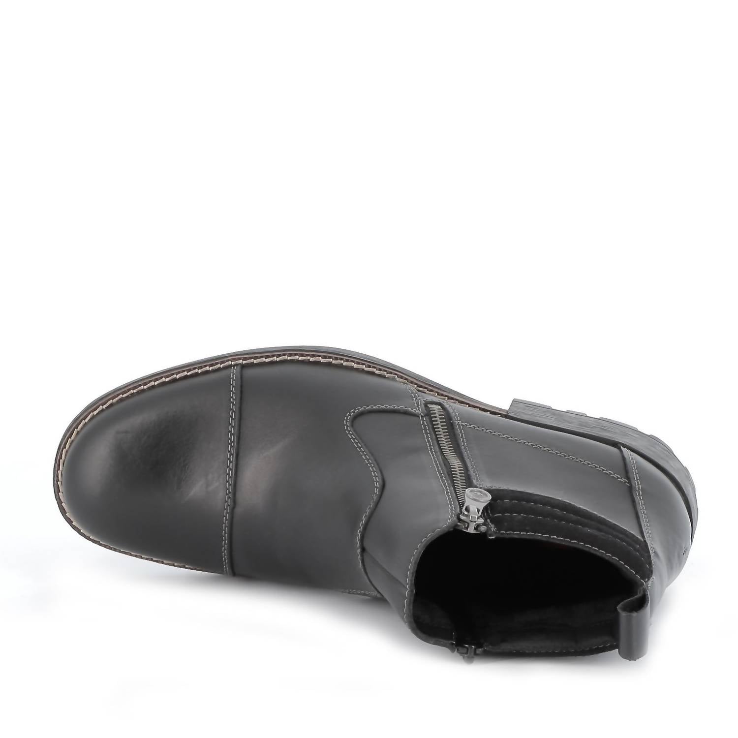 Say hello to the perfect, most versatile boot. The ankle height makes this style easily transition from day to night. Wear them with your favorite skinny jeans and tee for a more laid back look, or pair them with your favorite mini dress and jacket for a night out on the town. Step out in style with the RIEKER Men's Ron Zip Up Ankle Boots in sophisticated Nero/black. Crafted from premium leather, these boots feature a warm short faux fur lining and offer a comfortable wide fit. The durable thermoplastic sole and 33 mm (1.2 inch) heel provide added support, while the zip closure and removable insoles enhance practicality. Transform your workwear wardrobe this spring with these stylish boots, perfect for special occasions like anniversaries.