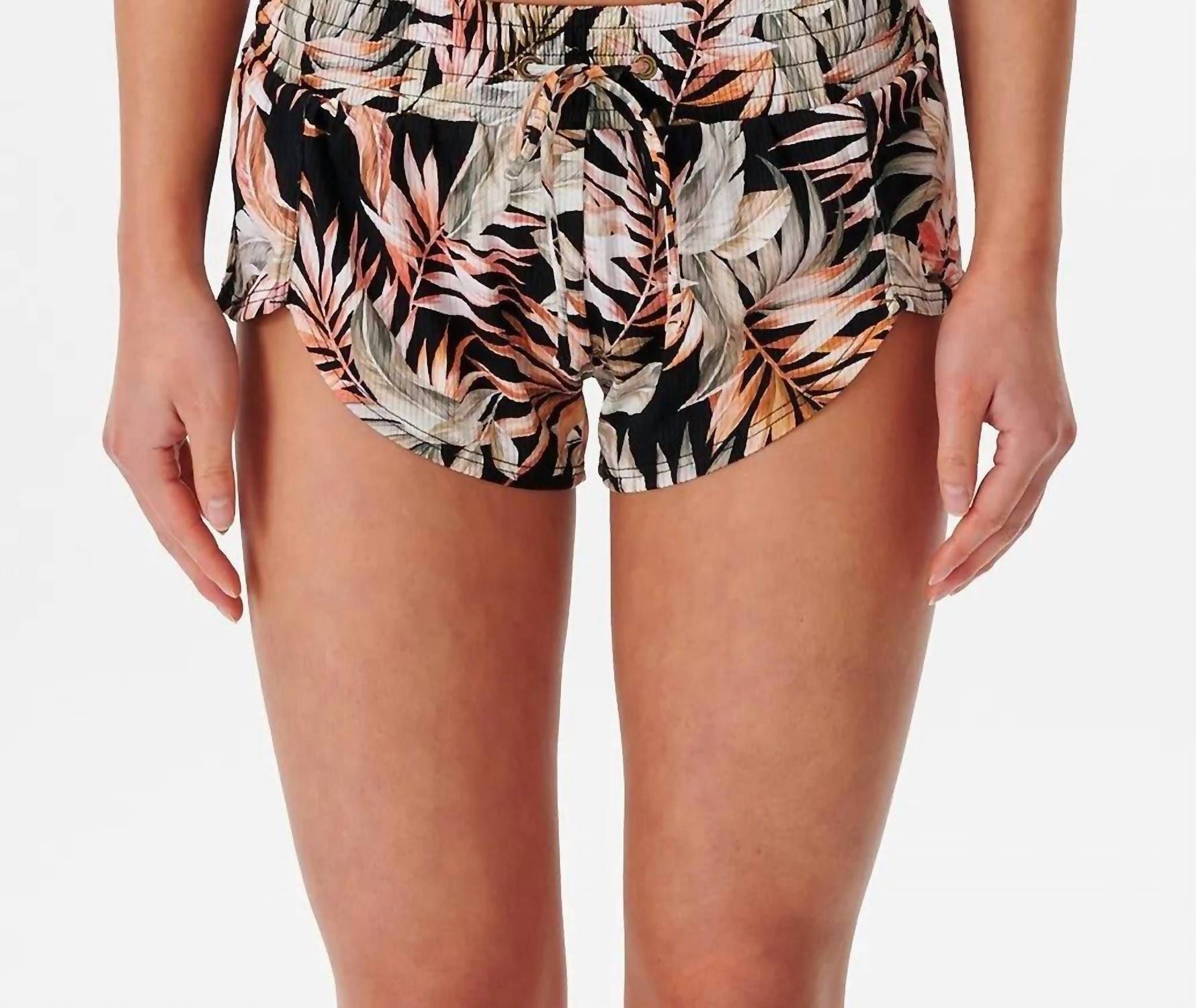 Fit to perfection, we love these high-waist shorts and you will too. Discover the Havana Lycra Boardwalk Short by Rip Curl, a must-have for effortless beach style with a Boho Chic flair. These high-waist women's shorts are crafted from soft, recycled black polyamide rib fabric and feature a comfortable, pull-on elastic waistband, perfect for casual wear and sunny beach days. Designed with a sleek, patterned look, these shorts are as sustainable as they are stylish. Embrace summer with this versatile piece, ideal for any occasion from lounging to beach outings.