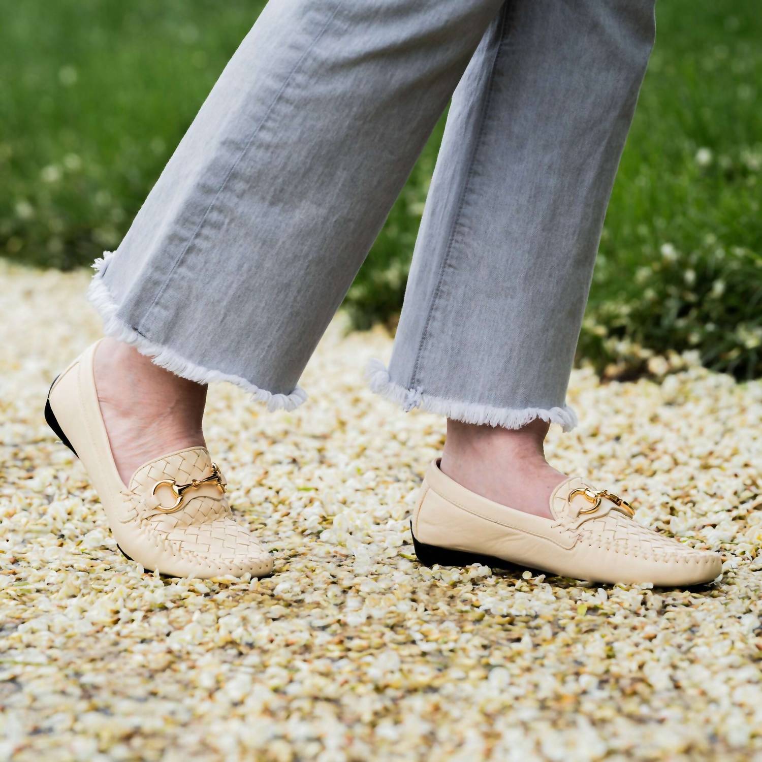 A preppy yet feminine take on the classic loafer. Meet the Women's Perlata Loafer by Robert Zur, a classic piece crafted in exquisite Bone True Glove leather. This flat almond toe loafer features a sophisticated woven plug and bit ornament, ideal for a seasonal vacation. The True Glove lining offers comfort, while the slatted rubber bottom ensures durability. Designed for effortless style, these loafers are a timeless addition to any wardrobe.