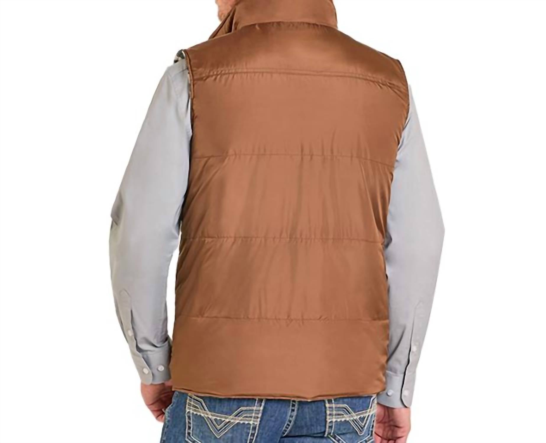 Elevate your wardrobe with the Men's Reversible Aztec Vest by Rock & Roll Denim, showcasing a bold Brown Multi patterned design that's perfect for a Western vibe. Designed for versatility, this sleeveless vest features a zip closure for easy wear and is ideal for vacation occasions during the fall season. It comes without pockets, offering a sleek, streamlined look. Crafted with a collar neckline, this piece allows you to embrace dual styles with its reversible design.