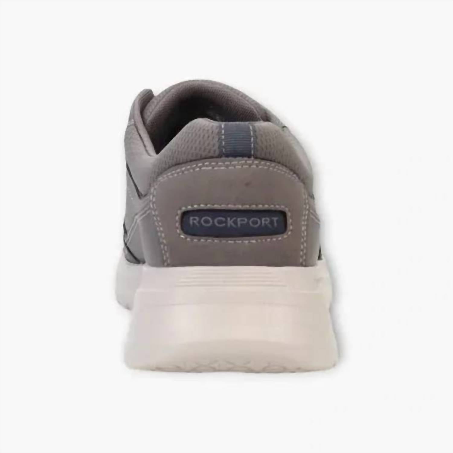 Meet the Rockport Men's ProWalker 6000 Shoes in stylish grey, designed for comfort and performance. Featuring a leather upper for timeless style, these shoes incorporate a lace-up closure for a secure fit. Equipped with a shock-absorbing cushioned insole and a durable rubber outsole with truTECH technology, they ensure support and traction for every step. Ideal for travel and athleisure, their Hydro-Shield waterproof construction keeps your feet dry, while the padded collar adds extra comfort. Men's Prowalker 6000 Shoes run large by a whole size to a size and a half. So, the 8.5 fits like a 9.5-10."