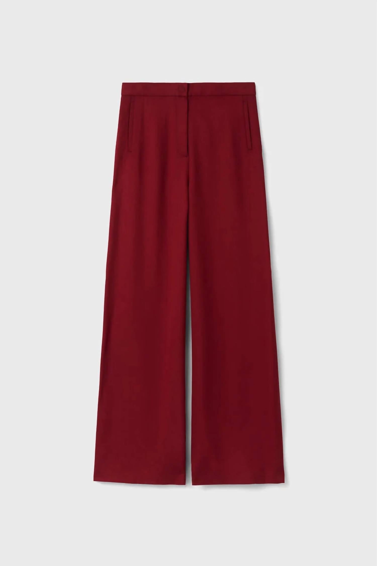 Discover the Sini Pant by Rodebjer in elegant Midnight, crafted with a sophisticated crepe design. These mid-rise trousers feature a relaxed fit and wide legs with a seamless silhouette for exceptional drape and flow. Made from 63% polyester, 32% viscose, and 5% elastane, they offer structure and comfort, complemented by side pockets and a zip closure. Ideal for a minimalist spring engagement look.