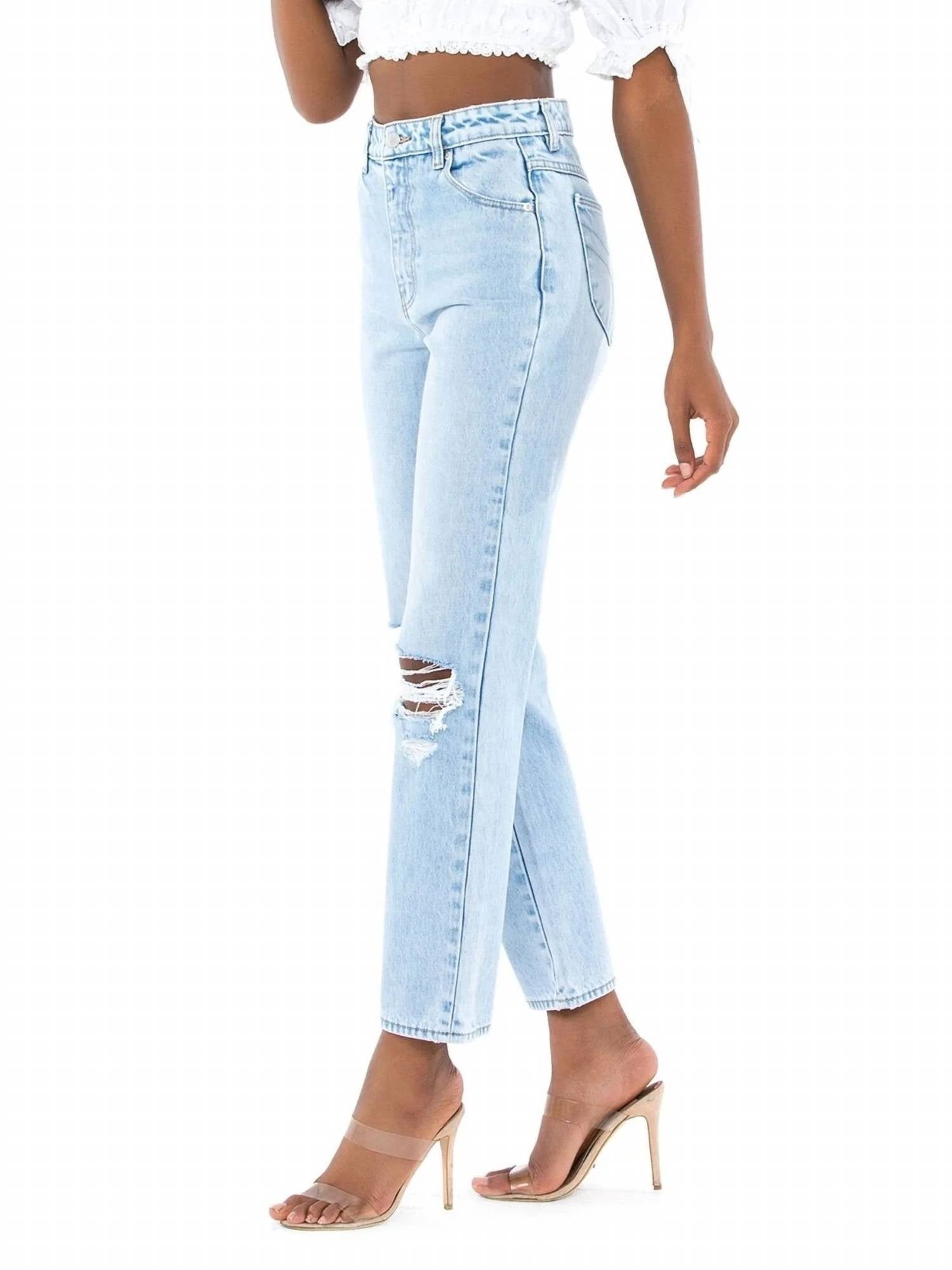 Tuck your favorite tee into these high-waist jeans for a more casual-cool feel. Experience effortless style with the ROLLA'S Original High Rise Straight Leg Jeans in Sunbleach Worn, crafted from 100% cotton rigid denim for an authentic vintage look. These jeans feature a relaxed fit with a high-rise waist and straight-leg design, enhanced by subtle distressing for a sun-faded vibe. Color: Light wash. Closure: Button closure. Care: Machine wash cold, tumble dry.