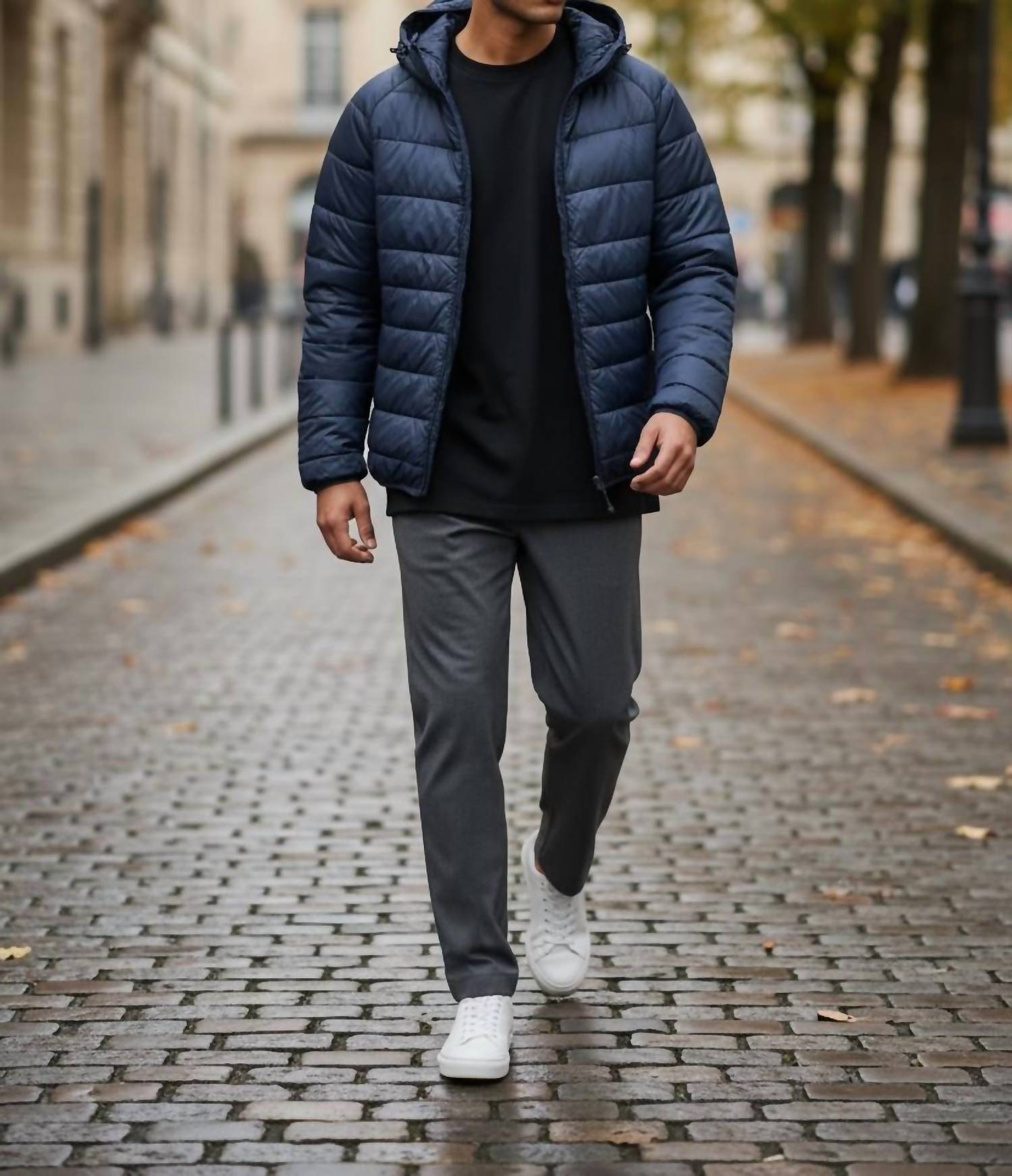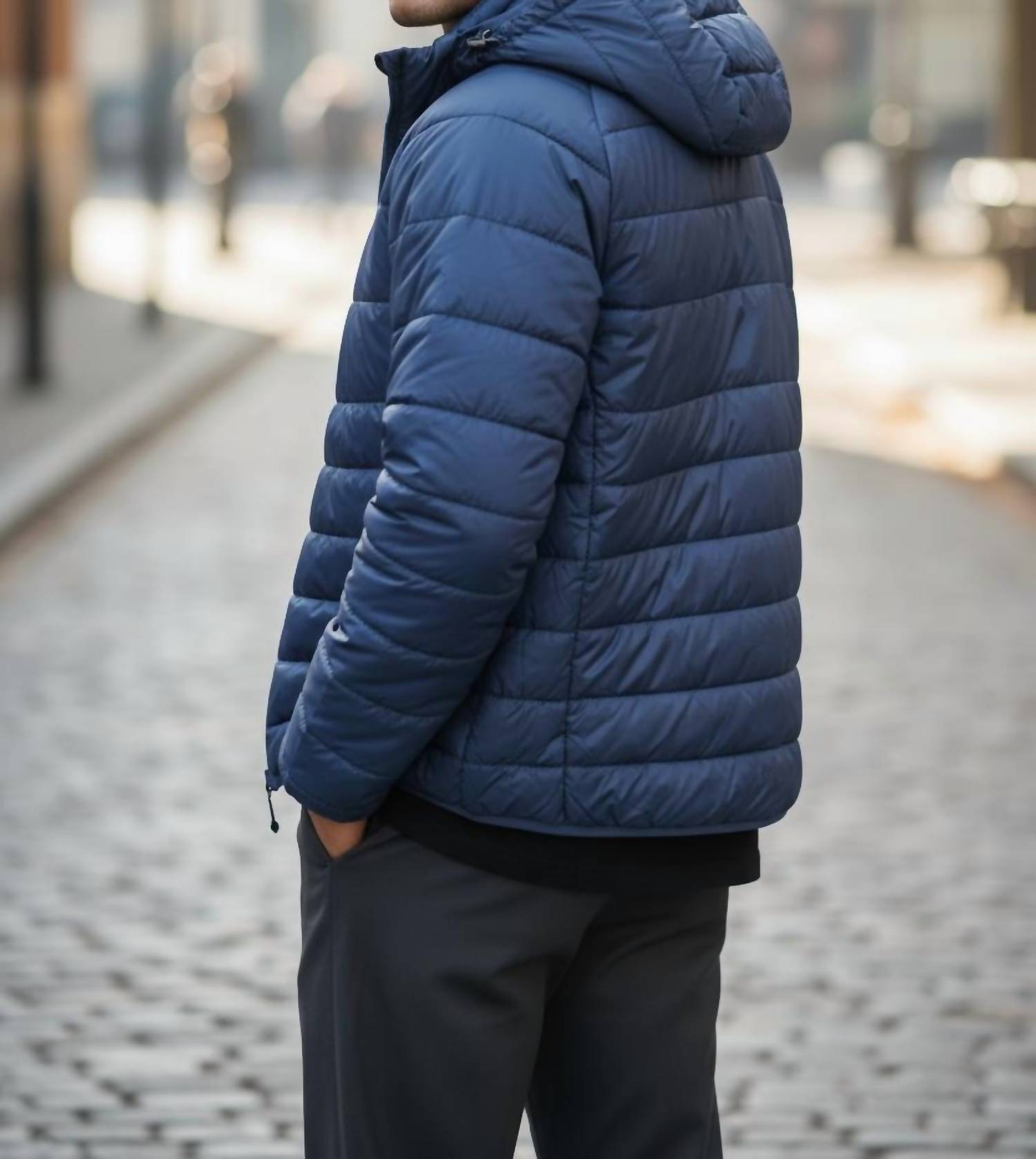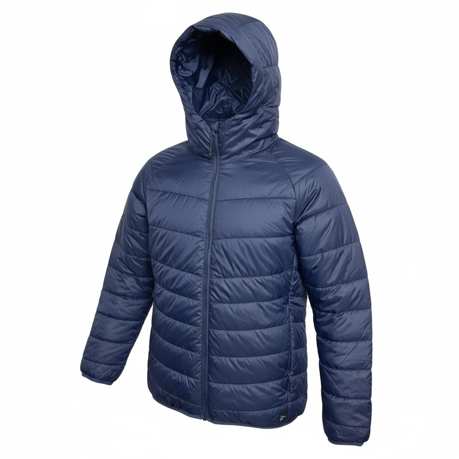 Stay prepared for any adventure with the Parker Packable Puffer Coat from Roosters Supply Company, perfect for minimalist, winter styling. This men's puffer jacket, crafted from 100% nylon with a 100% polyester fill, ensures regular fit comfort and lightweight warmth. Equipped with a full-zip closure, adjustable hood, and practical side zip pockets, it features a DWR finish to repel moisture. Its innovative packable design allows for easy storage, making it ideal for travel, outdoor escapades, or casual outings in solid navy.