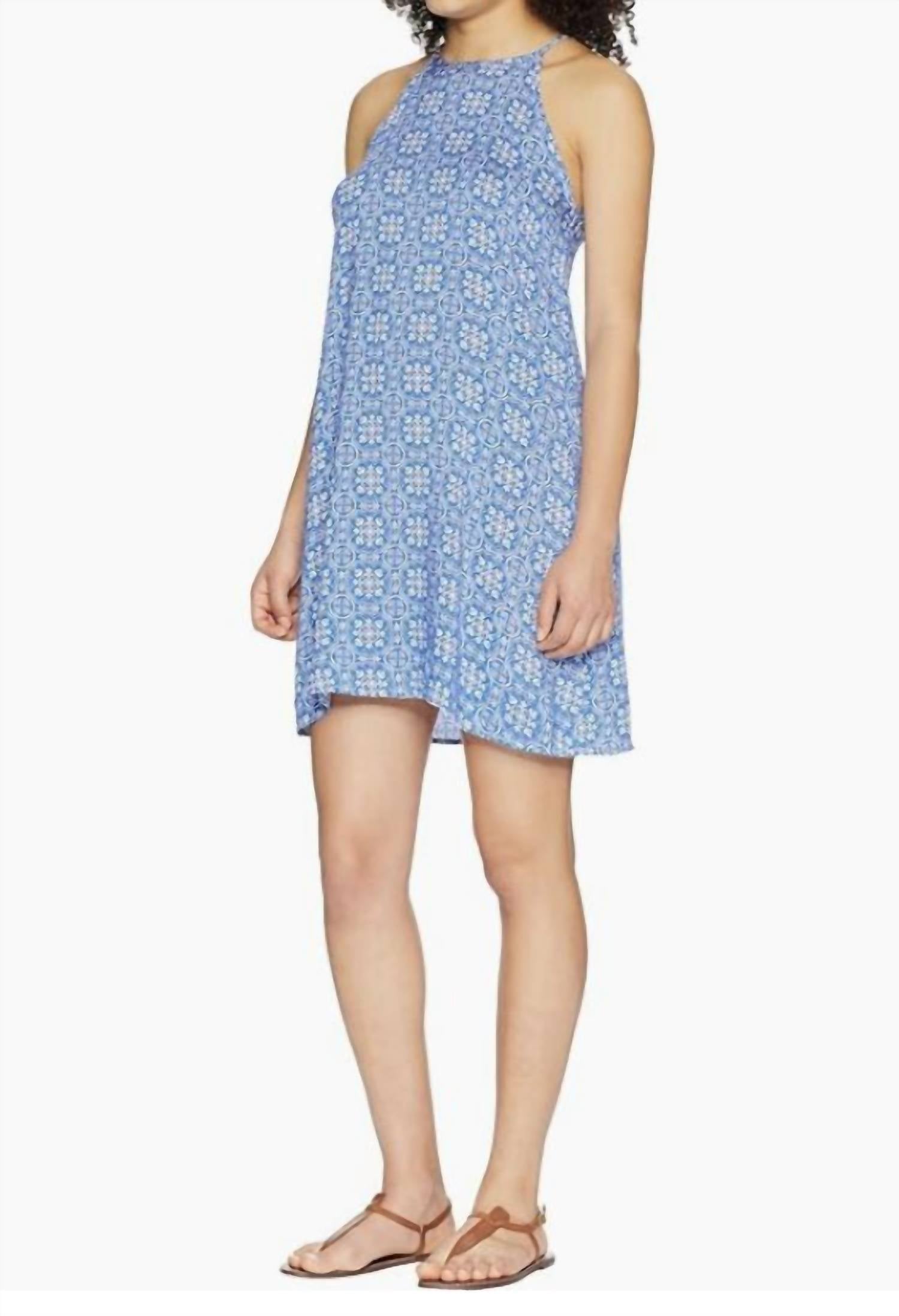 The kind of easy and flattering dress you'll be reaching for all season long. Unveil your summer style with the Tile Print Trapeze Dress by ROPER, crafted from 100% rayon. This sleeveless mini dress features a chic geometric handkerchief print in a vibrant blue, ideal for cocktail parties. Designed with a shift silhouette and crewneck, it offers effortless elegance and comfort. Closure: Pull on. Care instructions: Hand wash.
