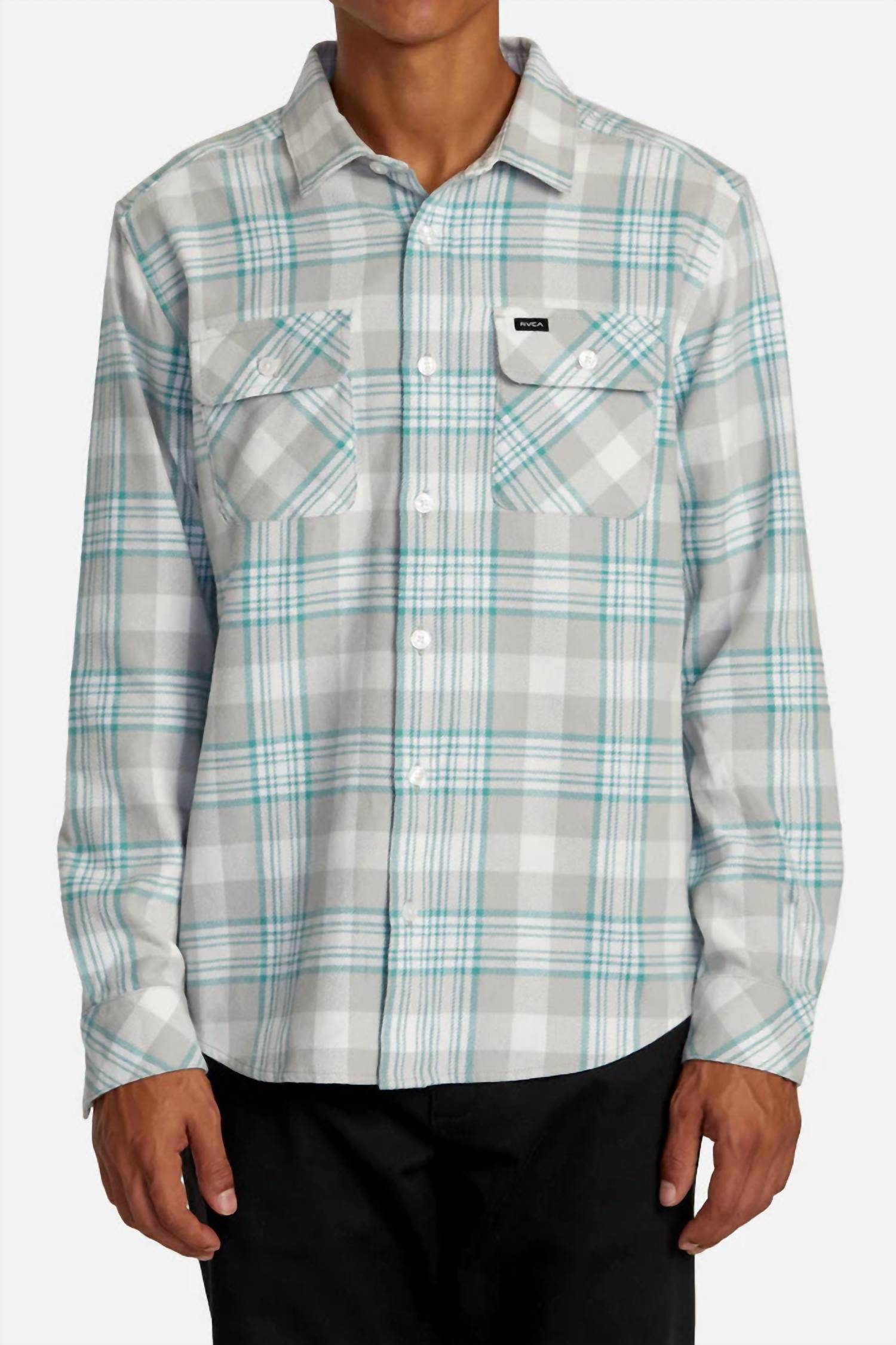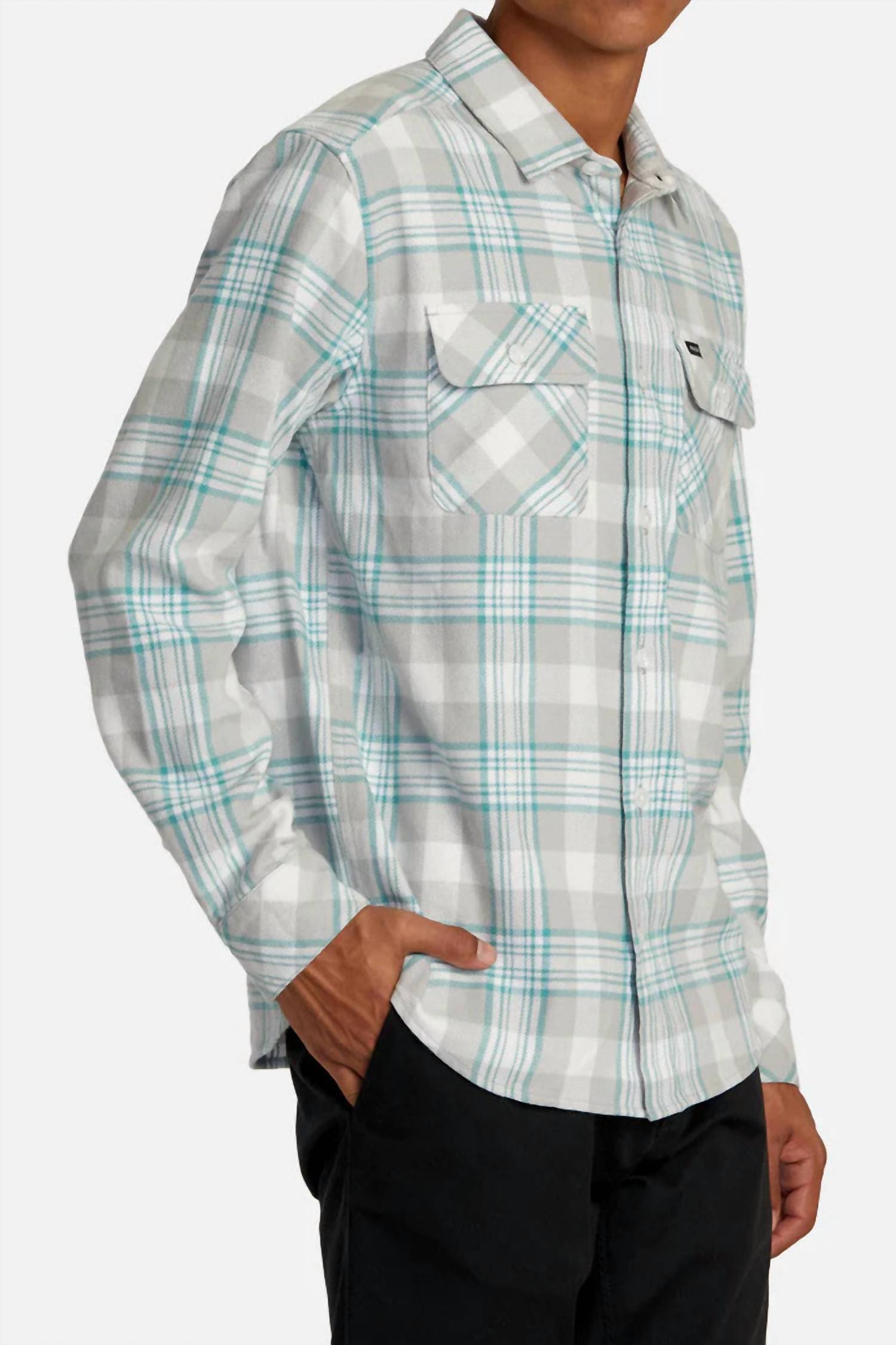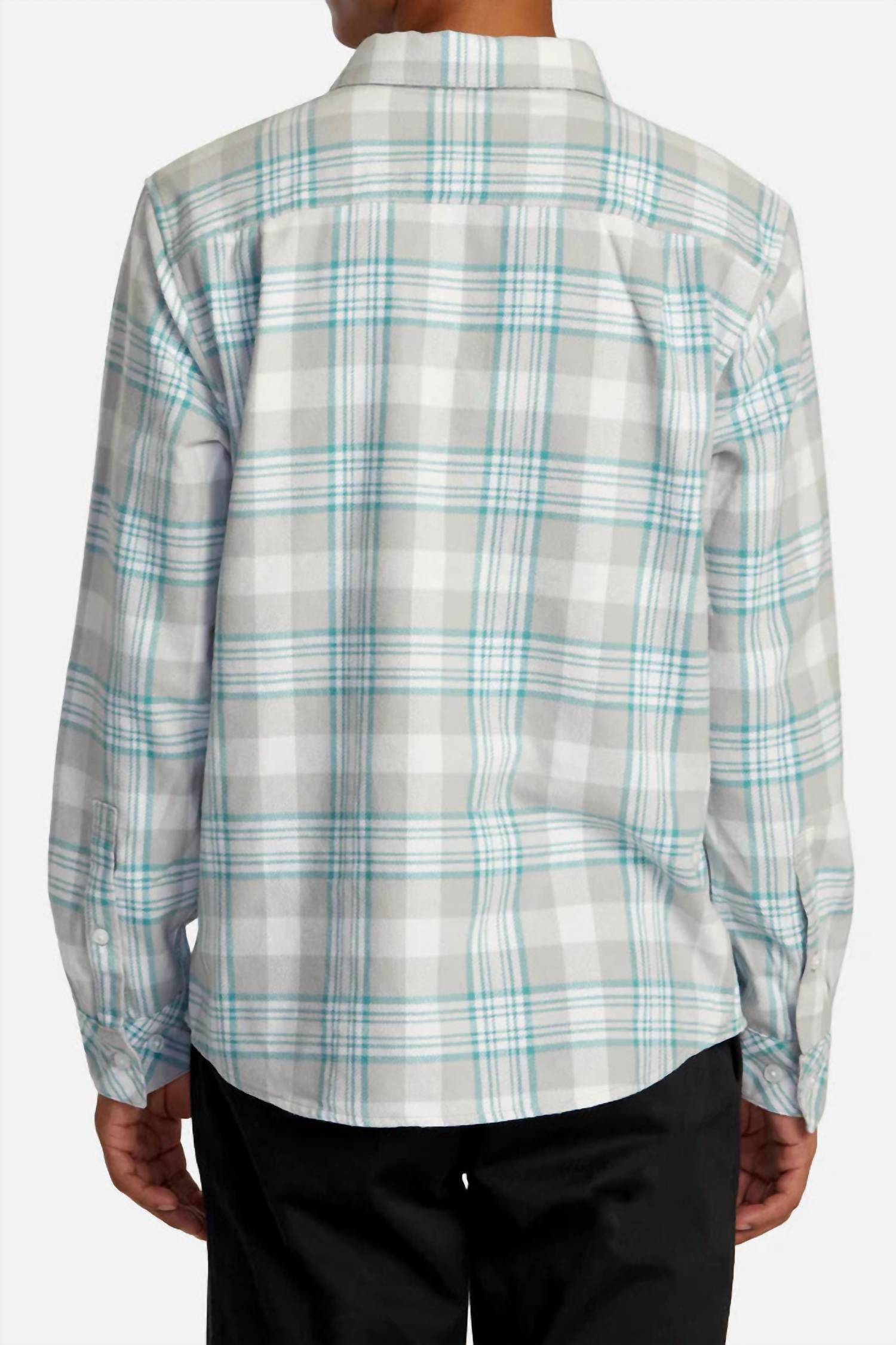 Elevate your casual wardrobe with the Slate Blue That'll Work Flannel Shirt by RVCA, designed to seamlessly blend style and comfort. Featuring long sleeves and a classic collar neck, this shirt is constructed from a durable cotton polyester blend plaid flannel fabric weighing 200 g/m². It boasts a button-up closure, two chest pockets, and a scalloped hem for added flair. The regular fit makes it ideal for spring adventures and vacation outings.