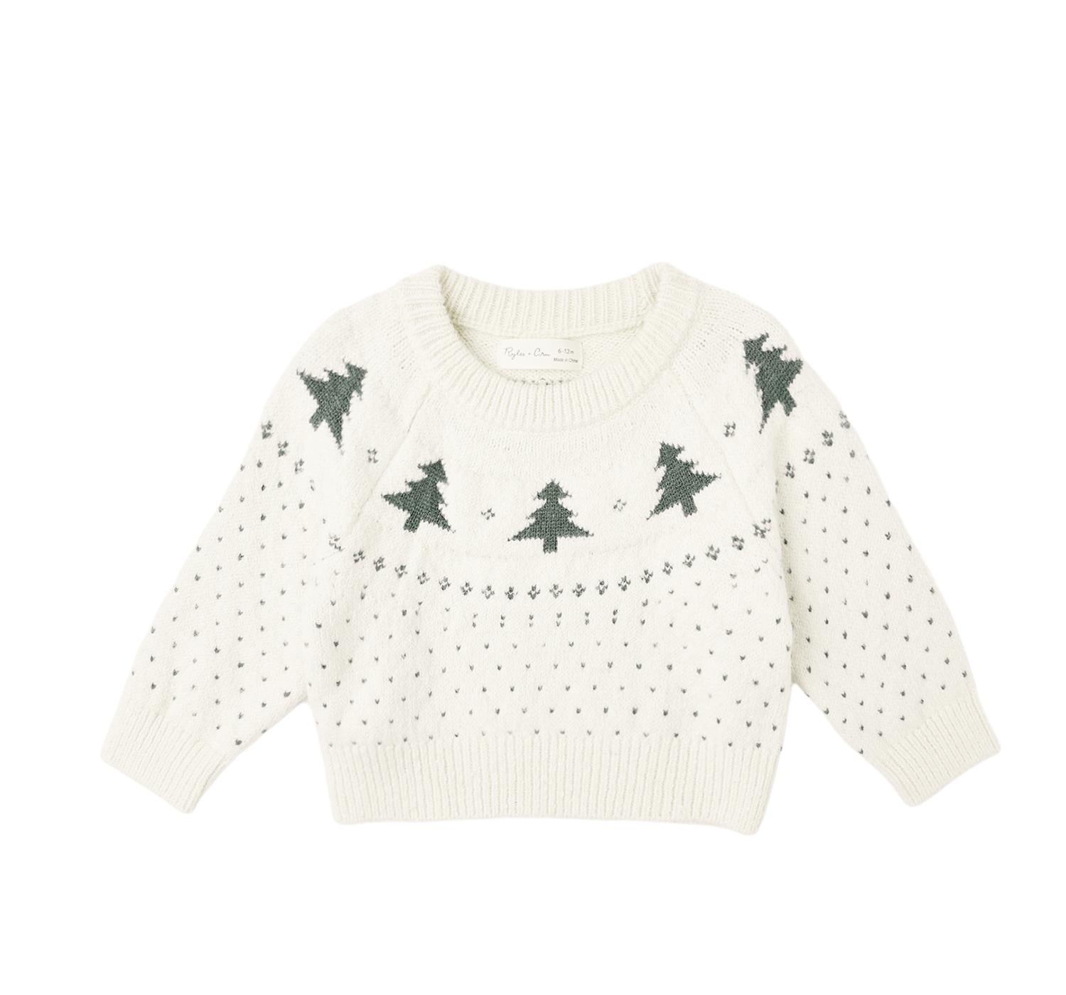 Introduce your little one to festive fashion with the Baby's Fair Isle Sweater by Rylee + Cru. This charming sweater, in a natural tone with tree motifs, is crafted from 43% acrylic, 29% cotton, 26% polyester, and 2% spandex, ensuring warmth and a comfortable stretch for winter gatherings. Perfect for holiday parties, it embodies a streetwear trend with its graphic pattern. Care for this winter essential is simple: machine wash and lay flat to dry.
