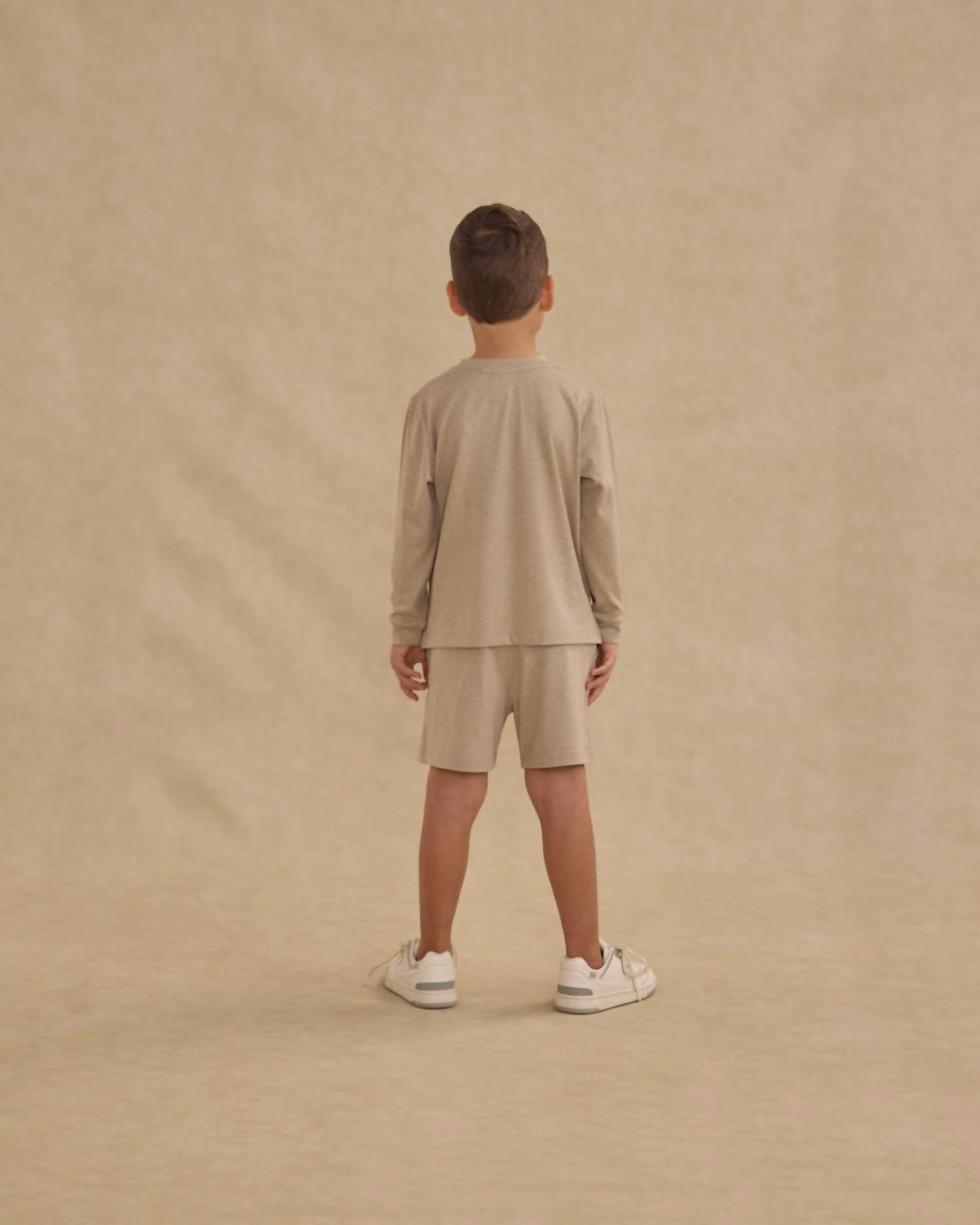 Discover the Boy's Long Sleeve Pocket Tee by Rylee + Cru, crafted in a stylish 'heathered stone' hue perfect for fall adventures. This long sleeve tee boasts a front chest pocket and a relaxed fit, ensuring comfort and style for any occasion. Made from 92% polyester and 8% spandex, it's designed for ease with machine washability and low tumble dry care. This solid pattern design promises a true-to-size fit, enhancing its appeal for travel and everyday wear.