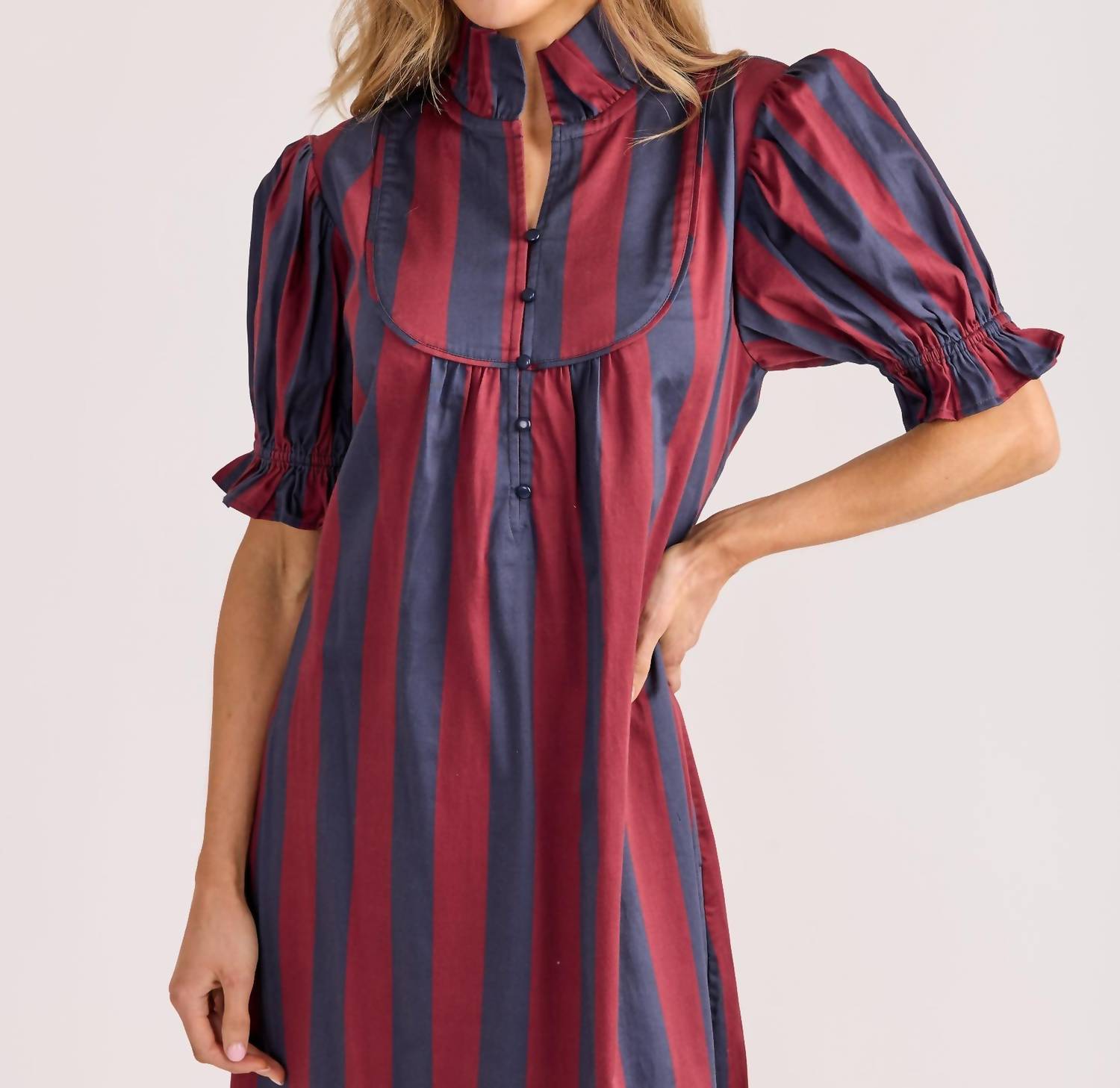 A midi dress so versatile, your options for wearing it are endless. Elevate your summer wardrobe with the Priestly Midi Dress by S'edge, a preppy piece in Vineyard Stripe crafted for engaging occasions. This A-line dress features short sleeves and a turtleneck, offering a modern and sophisticated silhouette. Made from a comfortable cotton spandex blend (98% cotton, 2% spandex), it closes with buttons and is designed for effortless style. Care instructions recommend machine wash cold and line dry.