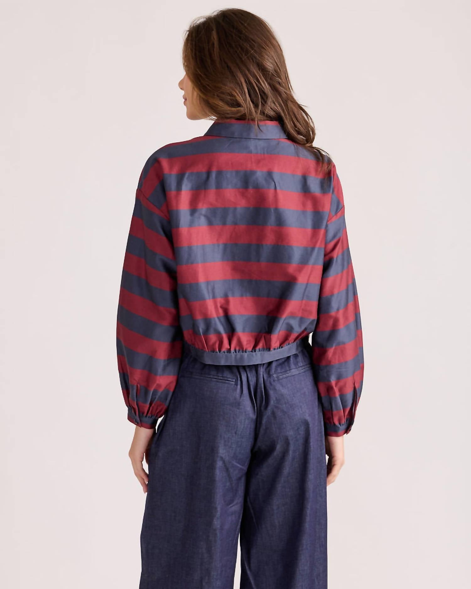 A long sleeve top you can wear with denim, skirts, well... just about anything! Introducing the Women's Sean Top by S'edge, designed in a refined Vineyard Stripe for a sleek silhouette. Featuring long sleeves and a classic collar, this top seamlessly elevates your style from day to evening. The absence of a specific closure enhances its natural elegance. Designed for comfort and polish, it’s perfect for sophisticated summer occasions.