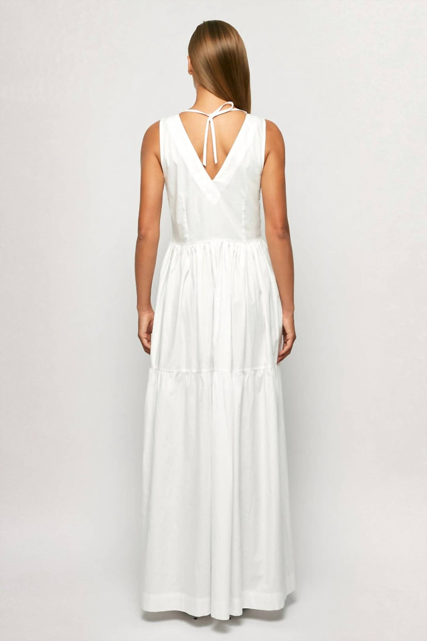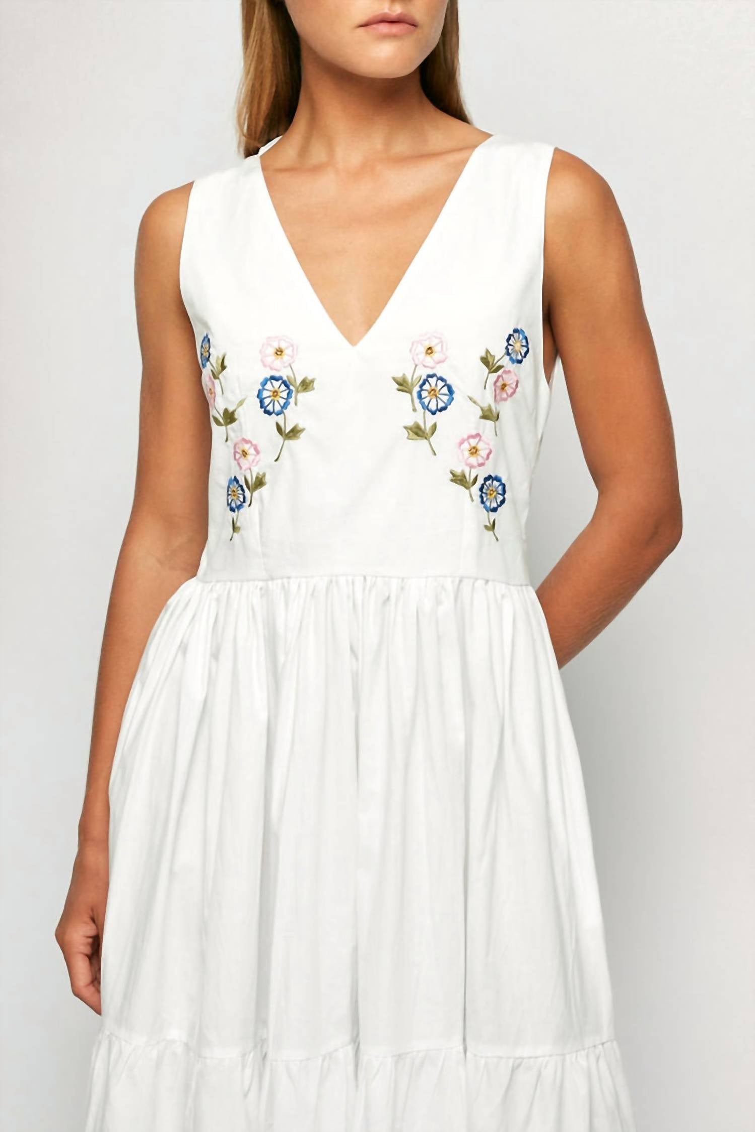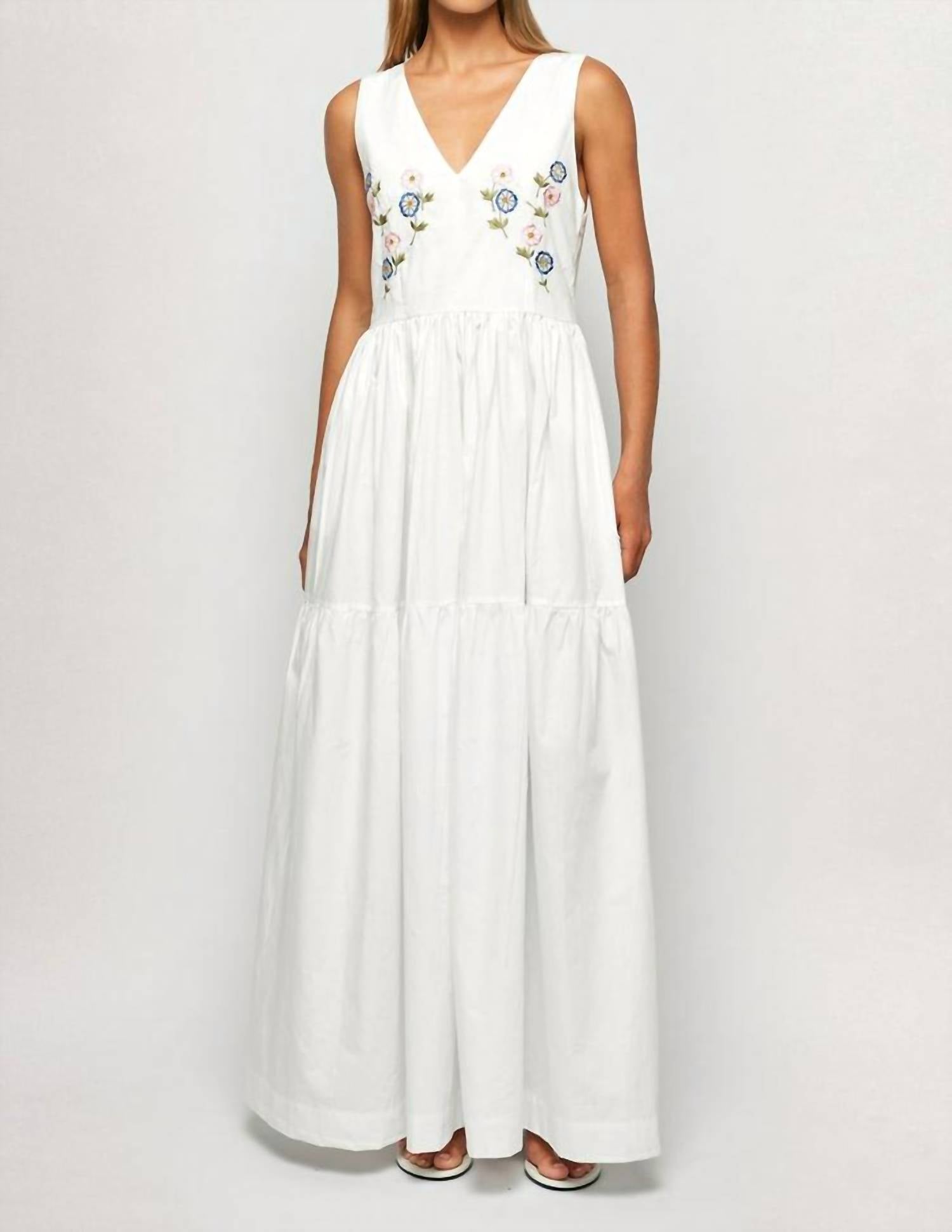 Who doesn't love a good maxi dress? This one you'll be reaching for season after season. Introducing the S/W/F V Neck Embroidered Maxi Dress, a timeless addition to your summer wardrobe crafted from 100% sustainable cotton in antique white. This sleeveless maxi dress features a plunging V-neckline and a tiered A-line silhouette, enhanced with delicate floral embroidery in soft pastels. This romantic piece is perfect for sun-drenched vacations or relaxed garden gatherings. Care for this elegant garment by hand washing and laying it flat to dry.