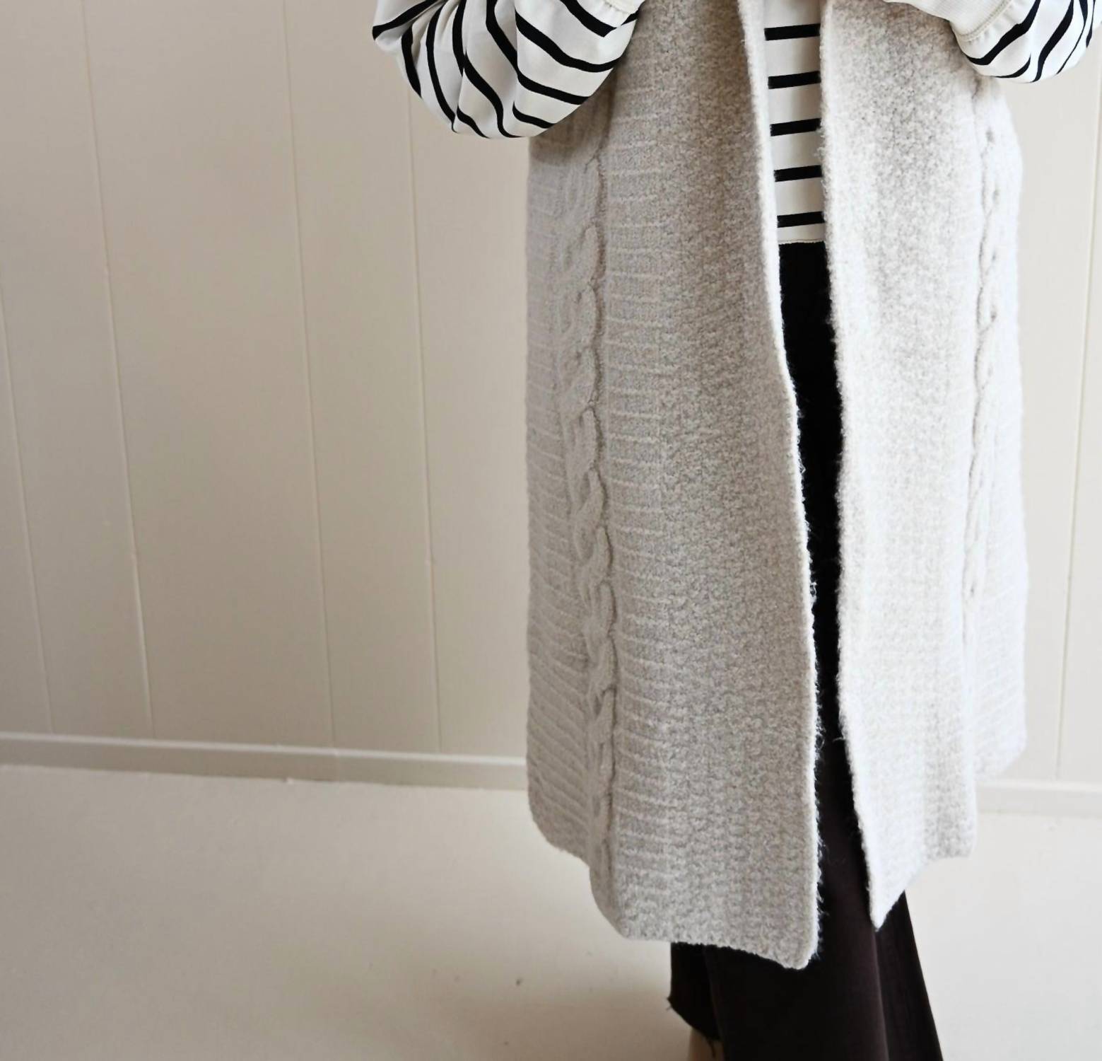Throw this adorable cardigan over any cami or tank top. Introducing the Women's Wood Street Sweater Cardigan Vest by SAGE THE LABEL, a chic layering piece for your fall wardrobe. This sleeveless vest, crafted in a cozy knit, blends 74% Acrylic, 22% Polyester, and 4% Spandex for a medium-weight feel that's perfect for vacation streetwear. Its open-front design offers a seamless pull-on closure, and the textured grey fabric adds warmth and style to any outfit. Model is 5'4" wearing size small.
