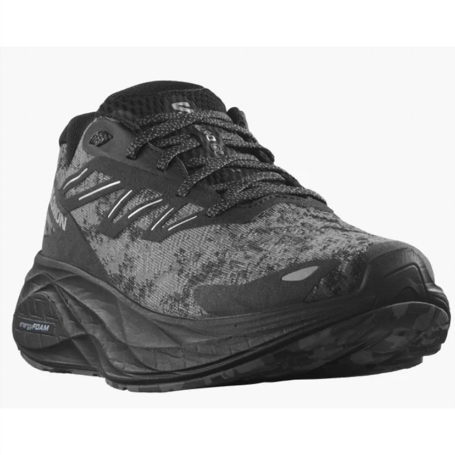 Stylish, comfortable and supportive. These athletic sneakers check all of the boxes. Discover the SALOMON Men's Aero Glide 2 Running Sneakers, designed to revolutionize your running experience. Crafted from lightweight nylon, these sneakers ensure an airy feel while providing ultra-soft cushioning for a plush, dynamic ride. With a unique color blend of Black, Phantom, and Ghost Gray, they feature a soft, foot-hugging collar zone and padded tongue for superior comfort. Sporting a medium width and round toe shape, these flat heel sneakers are perfect for fitness workouts and athleisure wear.
