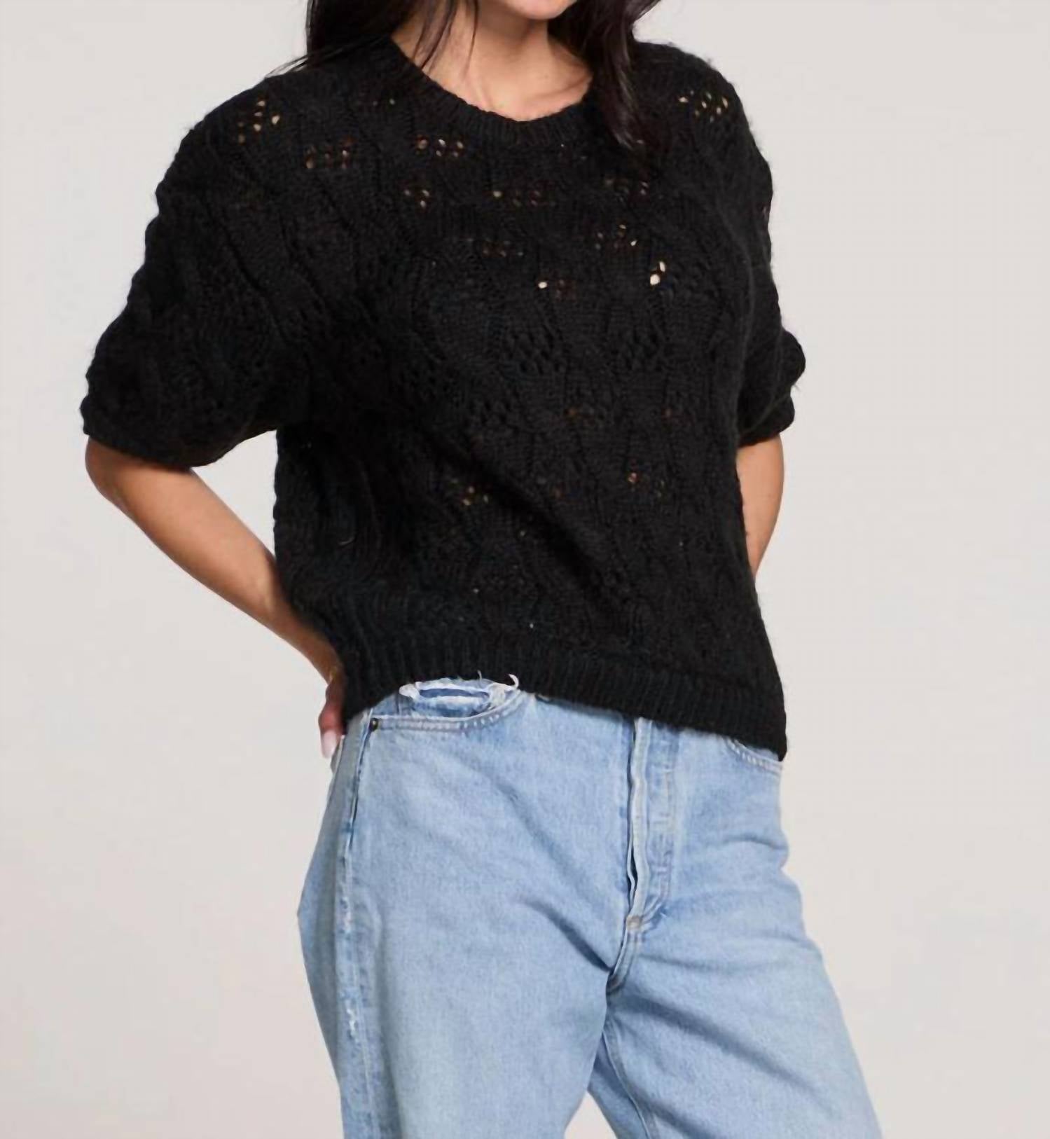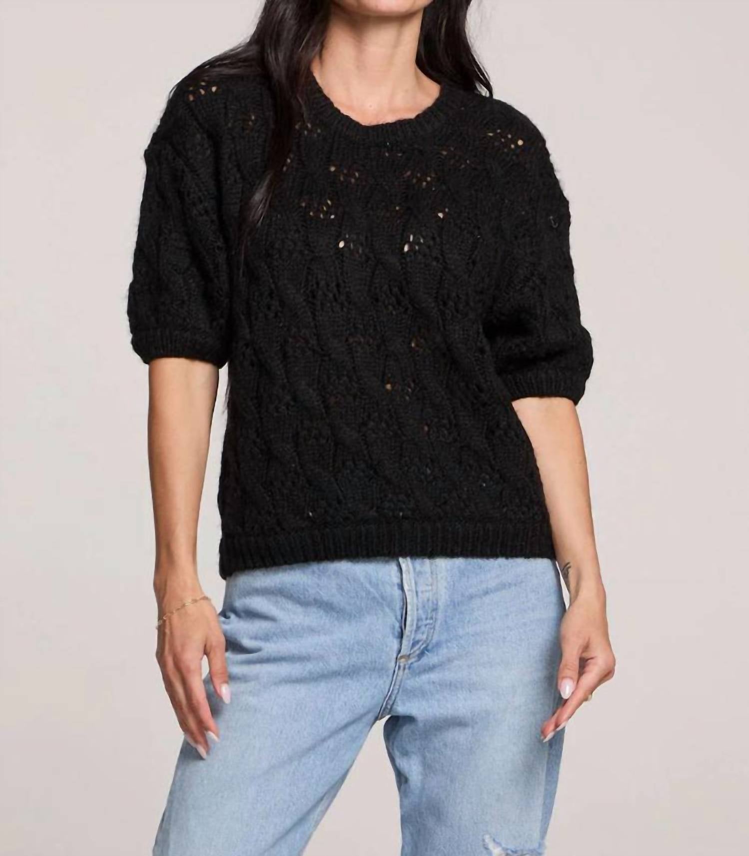 Experience the perfect blend of comfort and style with this trendy crew neck sweater, designed to effortlessly elevate your wardrobe. Pair it with your favorite denim and loafers for the perfect look. Introducing the Frank Sweater by Saltwater Luxe in timeless black, a minimalist piece perfect for your spring vacation. This sweater features elbow sleeves and a slight scoop neckline, offering a relaxed silhouette that pairs effortlessly with any ensemble. Crafted from a cotton blend material, it is designed with a stylish textured pattern. Closure: Side zipper. Embrace the casual sophistication of this nonchalant yet chic design.