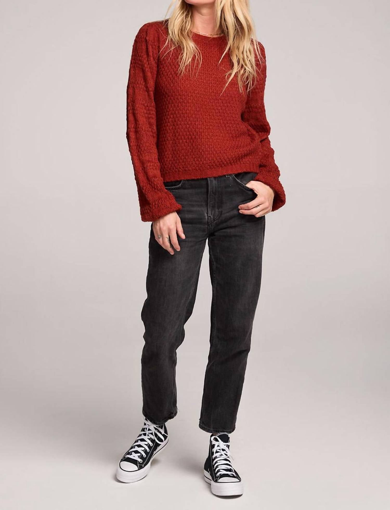 Experience the perfect blend of comfort and style with this trendy crew neck sweater, designed to effortlessly elevate your wardrobe. Pair it with your favorite denim and loafers for the perfect look. Introducing the Saltwater Luxe Margow Knit Sweater, a stylish addition to your fall wardrobe in a captivating brick red. This sweater, crafted from breathable knit material, features long sleeves with a subtle volume and a textured knit pattern throughout. Designed with a classic crew neckline, it promises comfort with its easy, relaxed fit suitable for various occasions. Closure: Pull on. Care instructions include hand washing and laying flat to dry. Perfect for cozy autumn days and chic evenings, make this versatile piece your go-to for a minimalist, vacation-ready look.