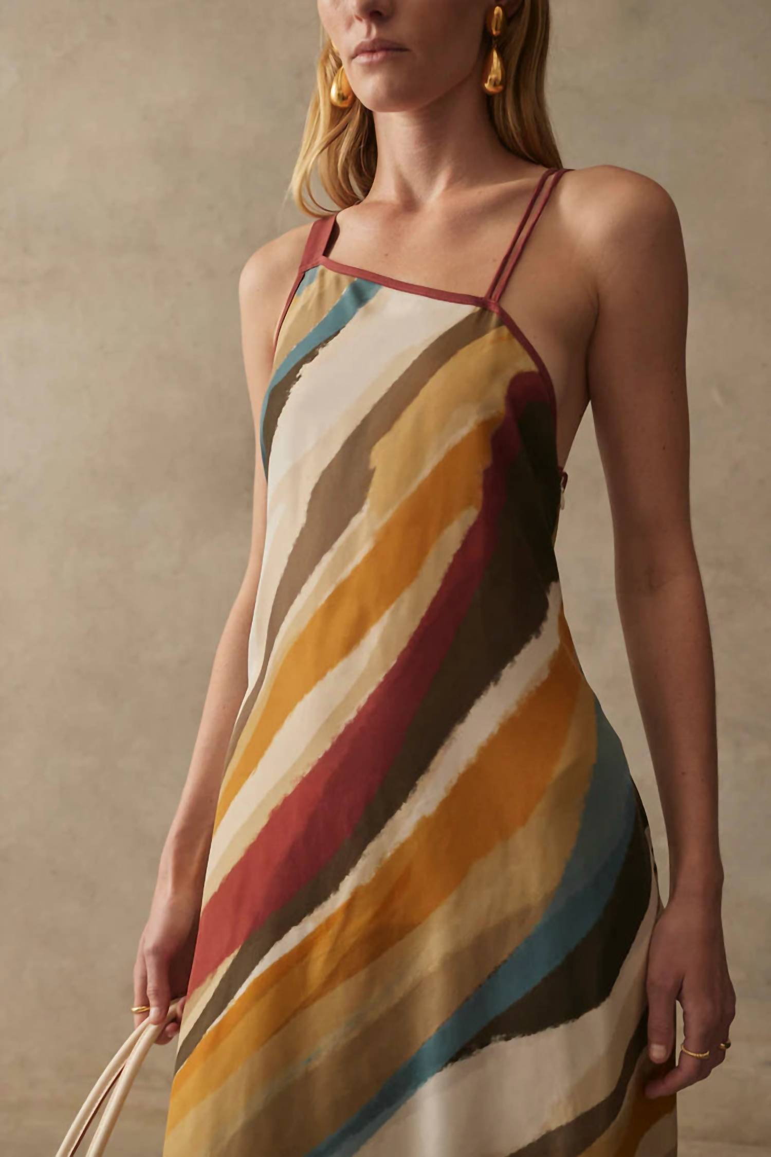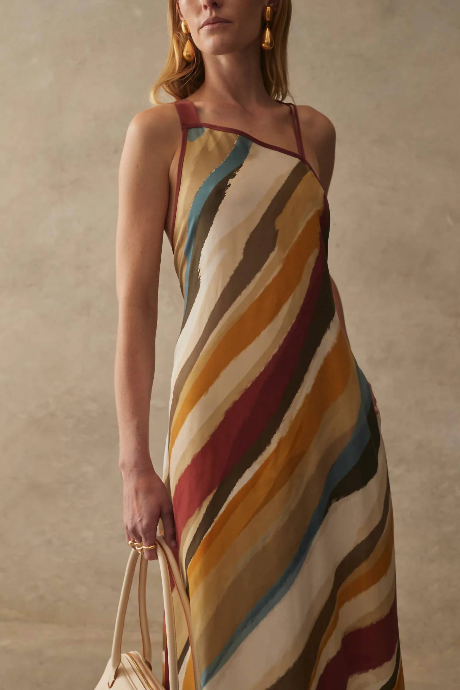 A maxi dress that is just as cute as it is comfortable. Meet the Sancia Dakota Maxi Dress, a captivating piece crafted from 100% Lyocell, celebrated for its luxurious and breathable fabric. This sleeveless maxi dress showcases a sophisticated V-neckline and a striking crossover strap design at the open back, enhancing its A-line silhouette. With a charming multicolor patterned finish, it offers a pull-on closure for ease and comfort. Perfect for summer vacations and Mother's Day celebrations, it demands dry cleaning to maintain its maximalist allure.