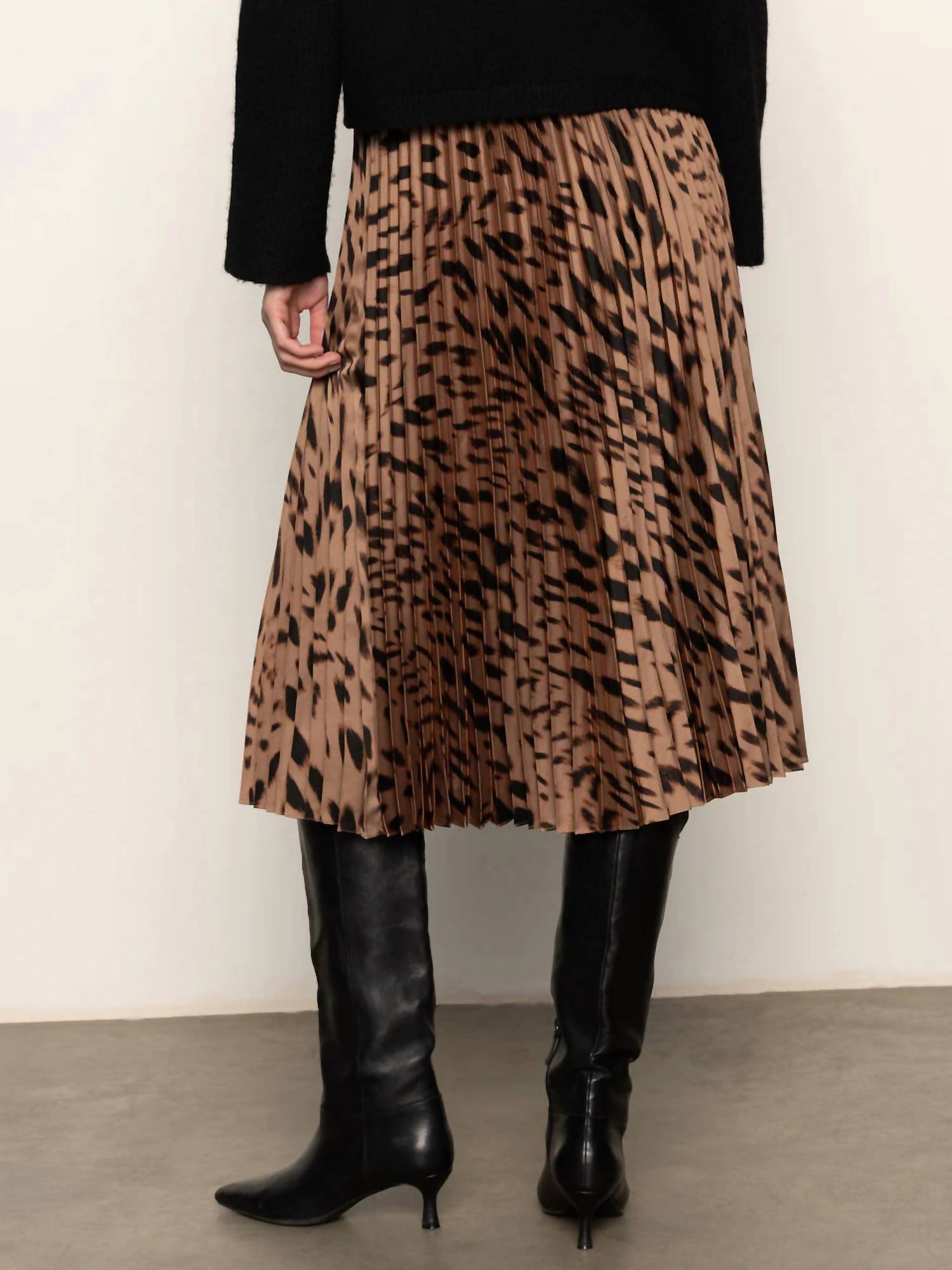 The midi length skirt is here to stay and we especially love this style. Introducing the Sanctuary Pleated Midi Skirt in vibrant Mocha Leo, an ideal choice for your spring wardrobe. Crafted from 100% polyester with a poly satin finish, this elegant A-line midi skirt offers a relaxed fit and features an elastic waistband for added comfort. Measuring 30.5 inches at the center front and pairing perfectly for vacation occasions, it promises both style and ease. Origin: Imported. Care instructions: Machine wash cold and hang to dry. Model wears size S and has a 26" waist and 5'9" height.