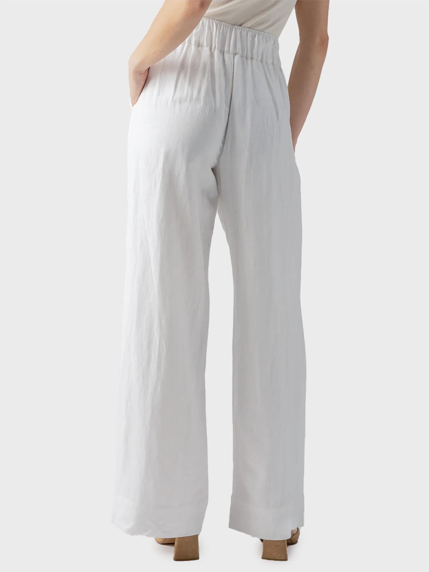 Step into effortless style with the Pull Me On Pant by Sanctuary, designed in a classic white linen blend for ultimate comfort. Featuring an elastic back waistband and a high-rise wide leg, these pants offer a relaxed fit with practical pockets for everyday convenience. Composition: 54% Linen, 46% Viscose. Closure: Pull on. Care: Machine wash cold, hang dry. Model is 5'9" and wearing a size small. Inseam: 32", Front Rise: 13.25". Perfect for minimalist spring outings or a holiday party.