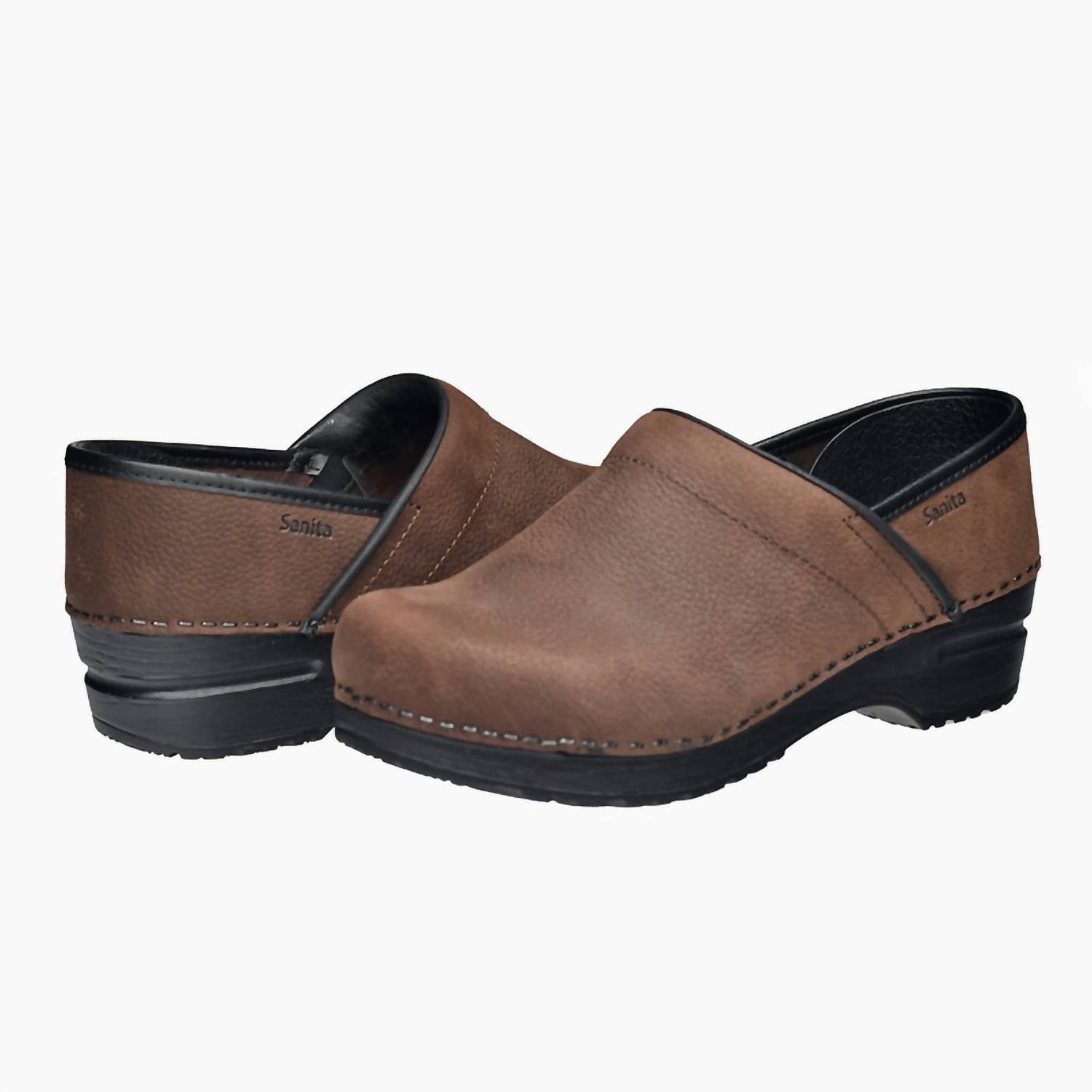 Slip them on and go! Step into comfort with the Women's Professional Smooth Oiled Clogs by Sanita, showcasing a stylish nubuck upper in rich brown. Designed with a padded instep and a round toe shape, these clogs offer ergonomic support due to their anatomically correct, microfiber insole and rocker bottom polyurethane outsole. Perfect for your workwear wardrobe, these clogs feature a low heel height (1 1/4"-2") and boast APMA certification for reliable support throughout the spring season. Ideal for adult women who appreciate both function and fashion.