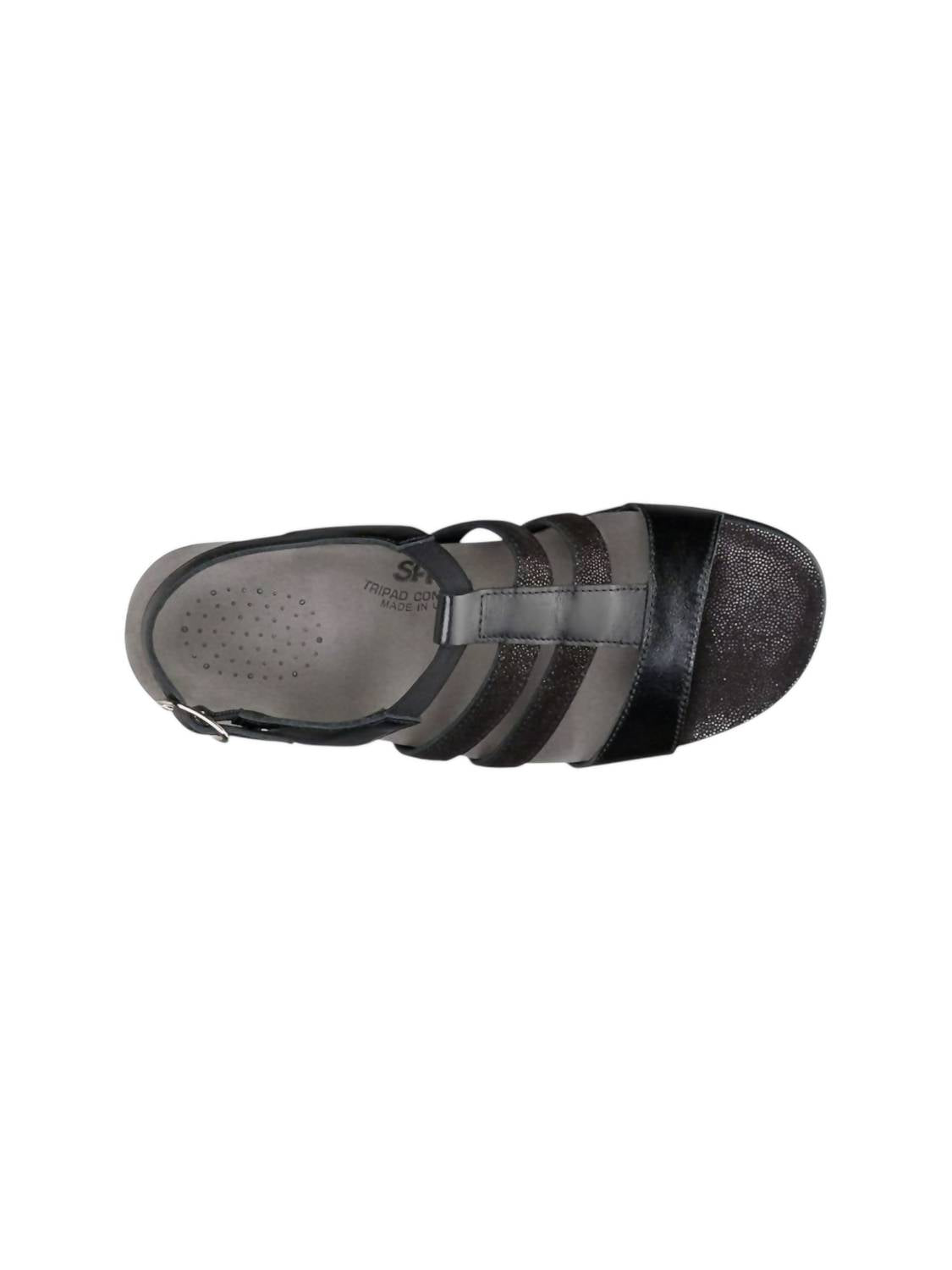 The perfect height for day to night. These open-toe sandals feature genuine leather straps with stylish textures, and an elastic strap ensures a flexible fit. The block heel is 1.75 inches high, providing a subtle lift for any occasion. Enjoy all-day comfort with features like the Multi-Layered Tripad® Comfort and SAS Elegant, Contoured Comfort Foot Bed, which ensures stability and superior shock absorbency. Made with the modern woman in mind, these sandals perfectly blend elegance and function.