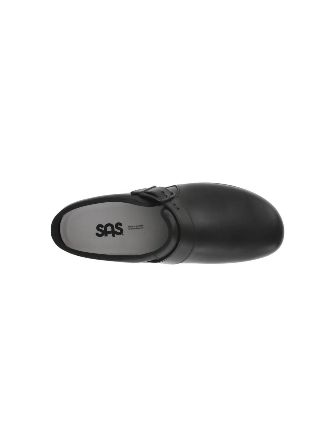 Loafers so versatile you can wear them with just about anything. Experience unparalleled comfort with the Women's Clog Slip On Loafers by SAS, expertly designed for all-day wear. These black loafers feature the SAS CoolStep™ footbed, ensuring dry, comfortable feet, while the SAS Tripad® Technology offers excellent shock absorption and support at key pressure points. The SAS Foot-Shape Last and Cradlefit Heel ensure a natural fit and cushioning for a carefree stride. Enjoy the convenience of a removable footbed and a modest 1.25" heel height, making these clogs perfect for any casual activity.