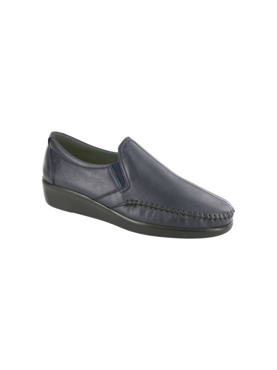 A preppy yet feminine take on the classic loafer. Introducing the Women's Dream Slip On Loafer by SAS, a meticulously crafted footwear piece featuring true moccasin construction with handcrafted fine leather. This sleek slip-on is equipped with pillow-soft lining and TRIPAD® Technology, providing unmatched comfort and support throughout the day. The design includes side gore panels for added flexibility, a removable cushioned footbed, and a 1.50" heel height. Ideal for maintaining both comfort and style, this loafer is as practical as it is elegant.