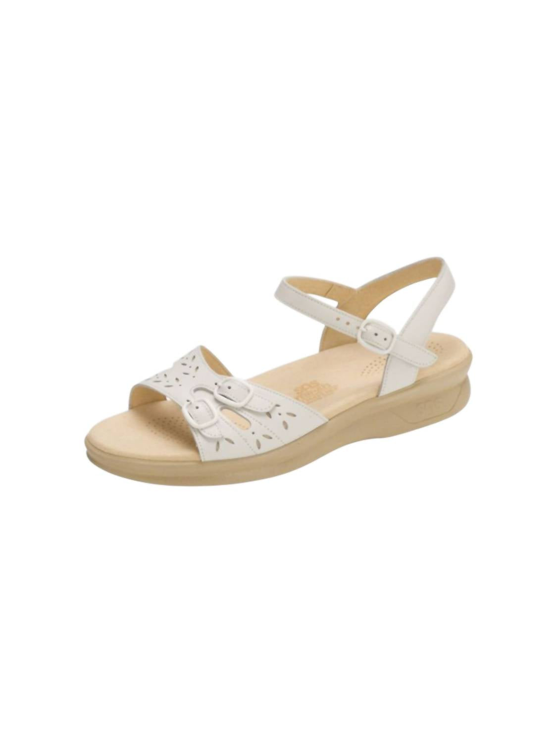 Introducing the Women's Duo Quarter Strap Sandals by SAS, perfect for all-day comfort. These sandals feature an open toe with a low heel height of 1.375 inches and three adjustable buckles for a customizable fit. A plush comfort insole, TRIPAD® Technology, and a cushion outsole offer shock absorption and support to key pressure points on your foot. The soft microfiber insole cover and lined leather ankle strap ensure stability and luxurious comfort, while the durable polyurethane material adds flexibility for extended wear.