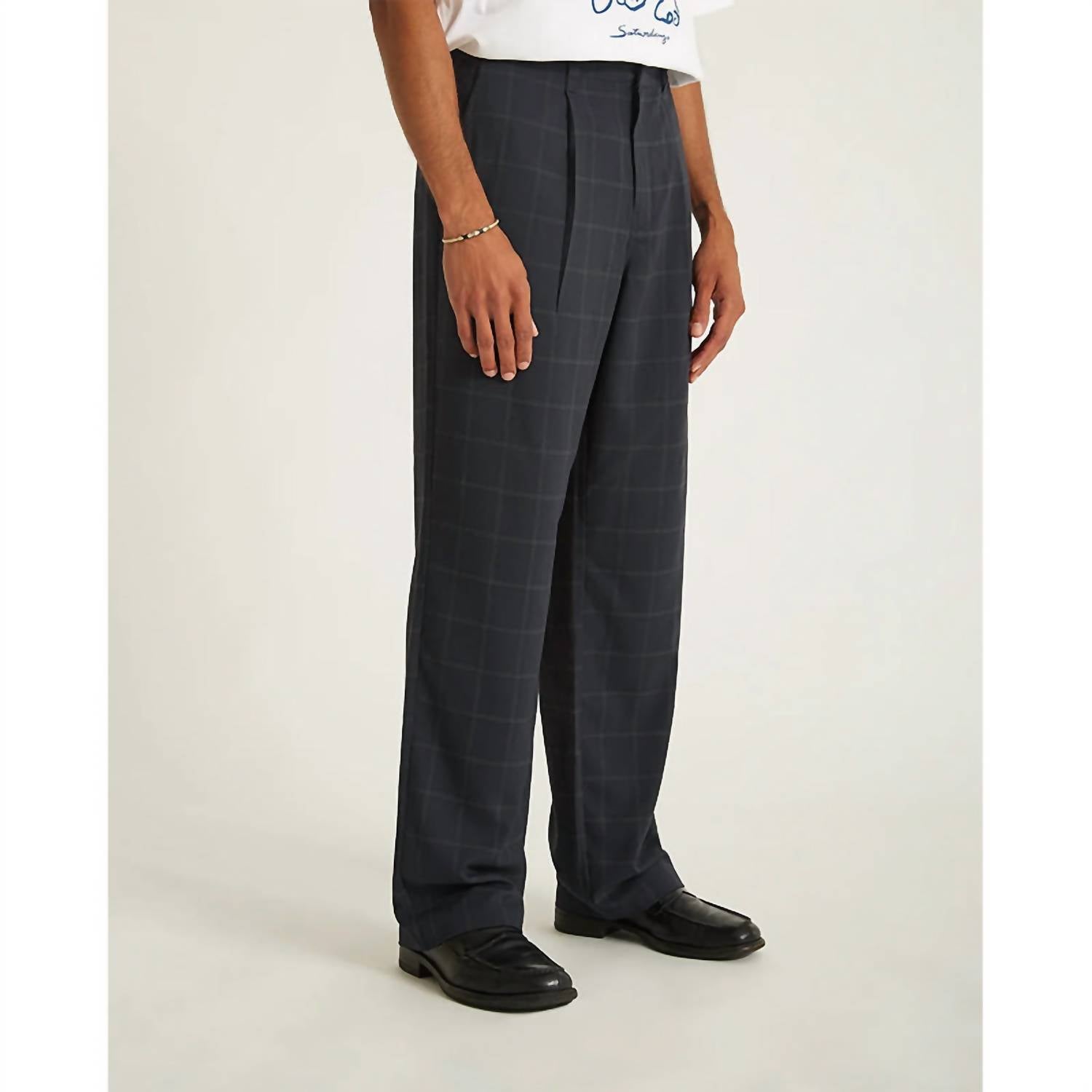Introducing the George Gabardine Trouser by Saturdays NYC, a men’s chino crafted in a black tonal plaid pattern for a sophisticated workwear look. Made from 65% polyester, 33% rayon, and 2% spandex, this midweight gabardine fabric offers durability, breathability, and a hint of stretch. Designed with a zip closure, these trousers feature practical elements like a fixed waist with belt loops, two front pockets, and two welt back wallet pockets. For care, machine wash and lay flat to dry to maintain the straight leg silhouette and 32" inseam.