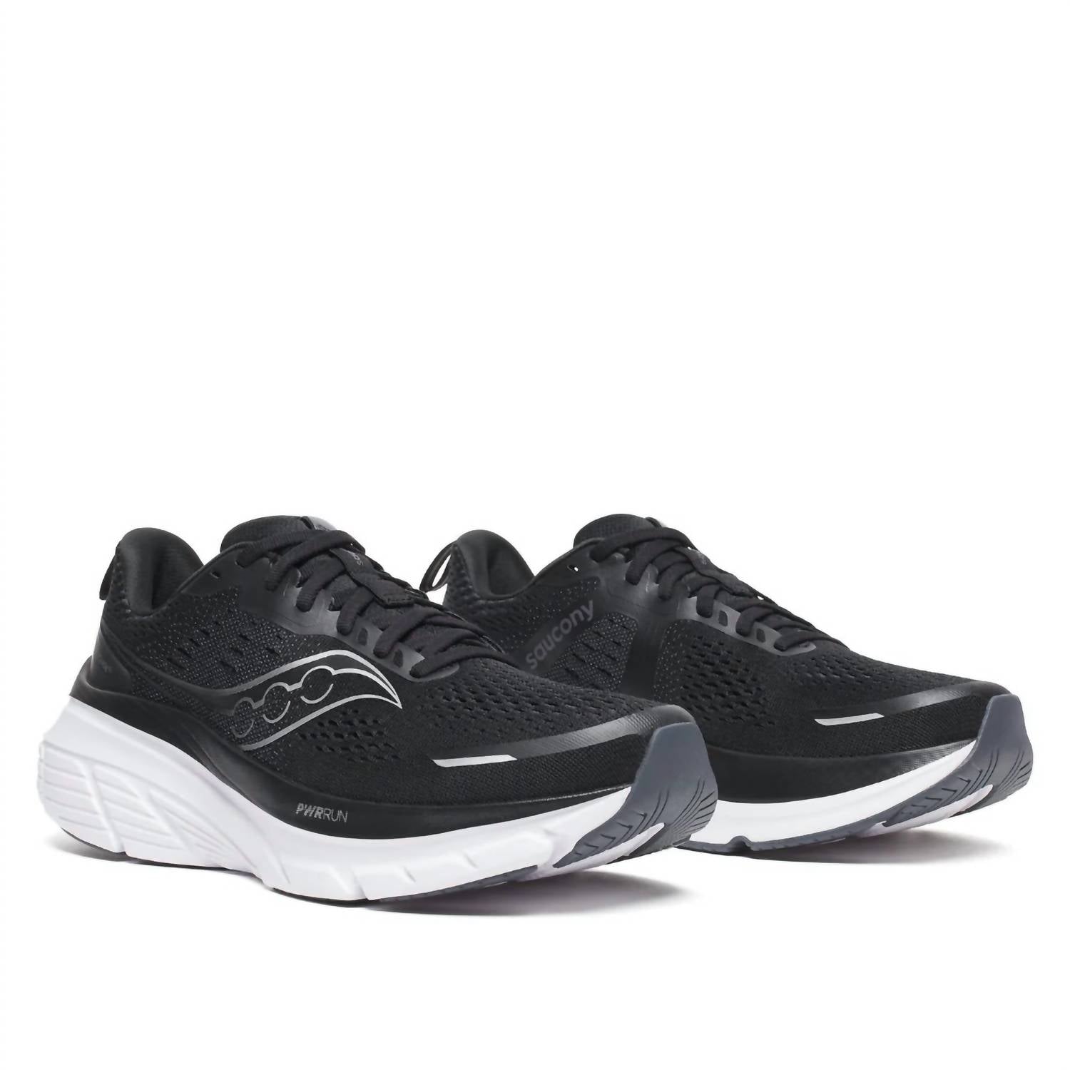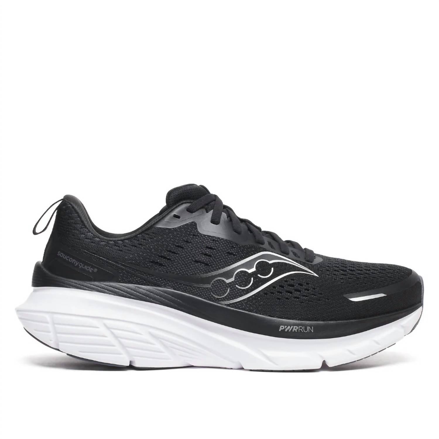 Elevate your running experience with the Saucony Men's Guide 18 Wide Running Shoes, the perfect blend of style and performance. These sneakers feature a breathable mesh upper and a padded heel collar for a snug, comfortable fit. With a weight of 9.6oz (272g) and a 6mm offset, they provide neutral support with max cushioning from innovative PWRRUN technology. The CenterPathâ„¢ technology and broad base platform ensure stability and protection, making them ideal for fitness workouts and athleisure wear. Designed for daily movement, these shoes ensure you stay secure and confident with every step.