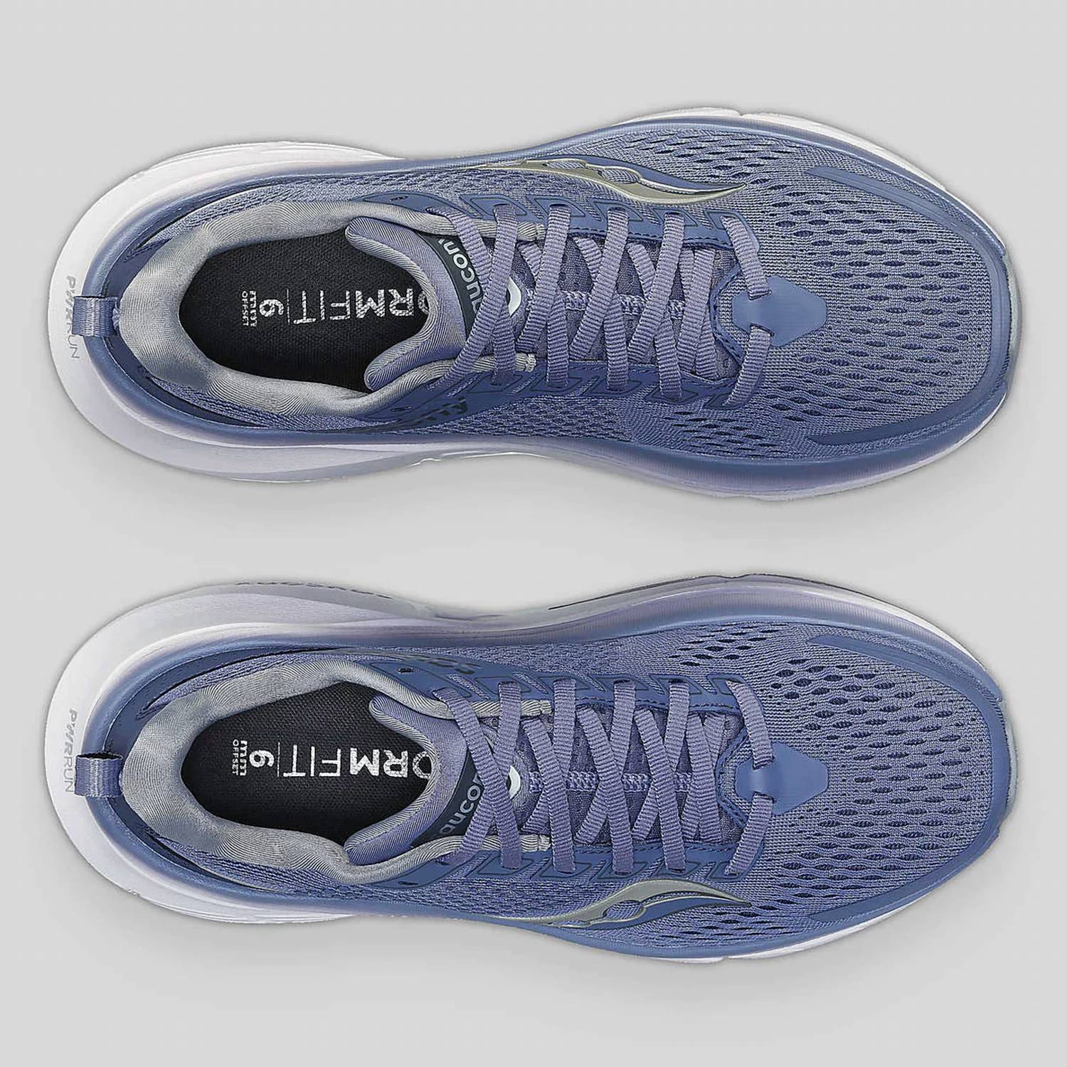 When fashion meets function. Elevate your athletic wardrobe with the Women's Guide 17 Running Shoes by Saucony, presented in a striking Iris Violet. Crafted for seamless support and maximum cushioning, these shoes are perfect for fitness or workout occasions, featuring a platform heel and medium width for a secure fit. The engineered mesh upper ensures breathable comfort, while the upgraded Center Path Technology provides a smooth stride with a lowered heel-to-toe offset of 6mm. Enjoy the benefits of Saucony's PWRRUN foam and PWRRUN+ sock liner, offering a plush and lively underfoot experience ideal for daily runs or recovery days.