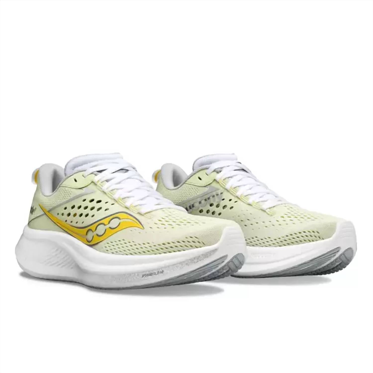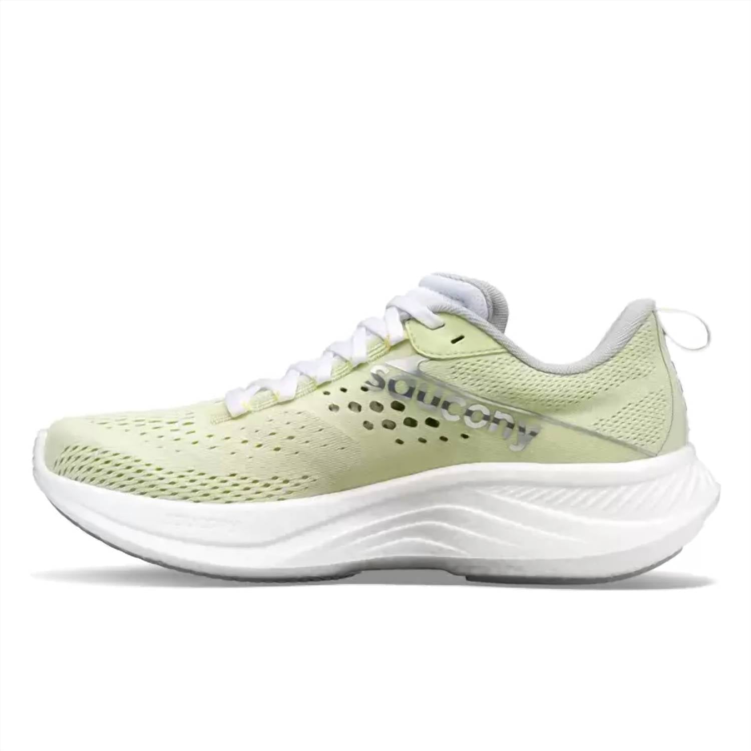 When fashion meets function. Introducing the Saucony Women's Ride 17 Running Shoes in Fern/Cloud, crafted for an energized run with exceptional comfort. These athletic shoes feature a round toe design, perfect for daily fitness routines, workouts, and casual movement. Engineered with advanced PWRRUN+ technology, they offer high energy return and a smooth ride, complemented by an engineered mesh upper for extra breathability. This athleisure-inspired pair is designed to fit your unique foot shape with a 360-degree approach, providing optimal comfort and support for spring activities.