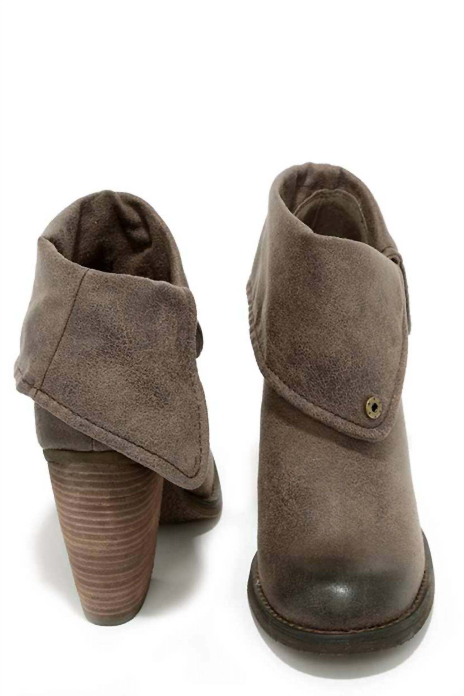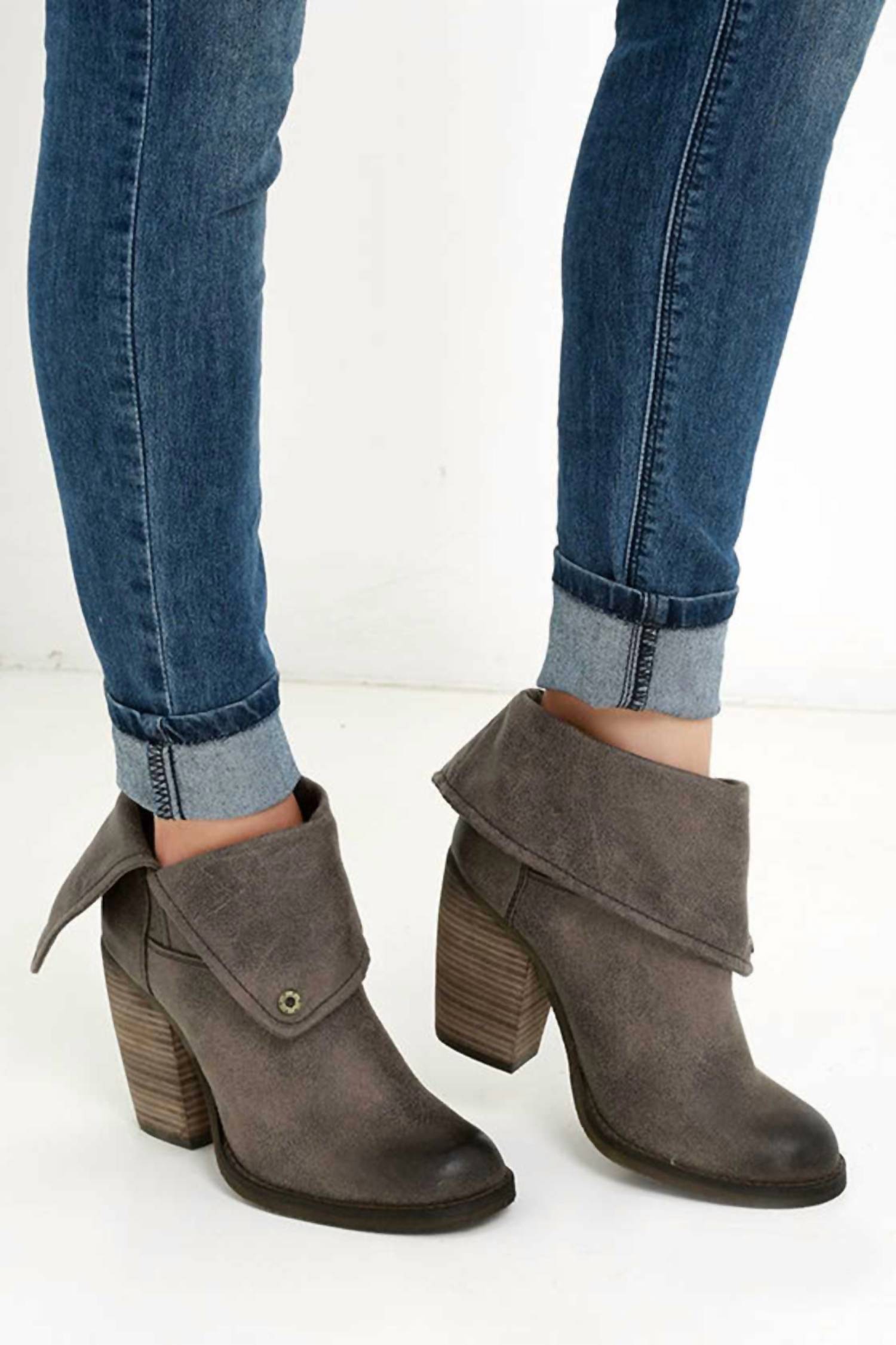 Say hello to the perfect, most versatile boot. The ankle height makes this style easily transition from day to night. Wear them with your favorite skinny jeans and tee for a more laid back look, or pair them with your favorite mini dress and jacket for a night out on the town. Turn heads with these chic fold-over boots, crafted from tumbled vegan suede for a soft, stylish finish. The 7" shaft can be worn up and secured with a snap or folded over to create an asymmetrical collar for two looks in one. Designed with a 3.5-inch stacked heel, cushioned insole, and nonskid rubber outsole, they offer comfort and stability while keeping your style effortlessly on point. Made from all vegan-friendly, man-made materials.