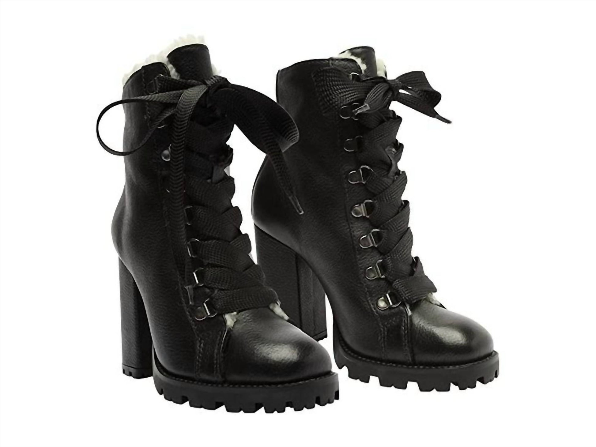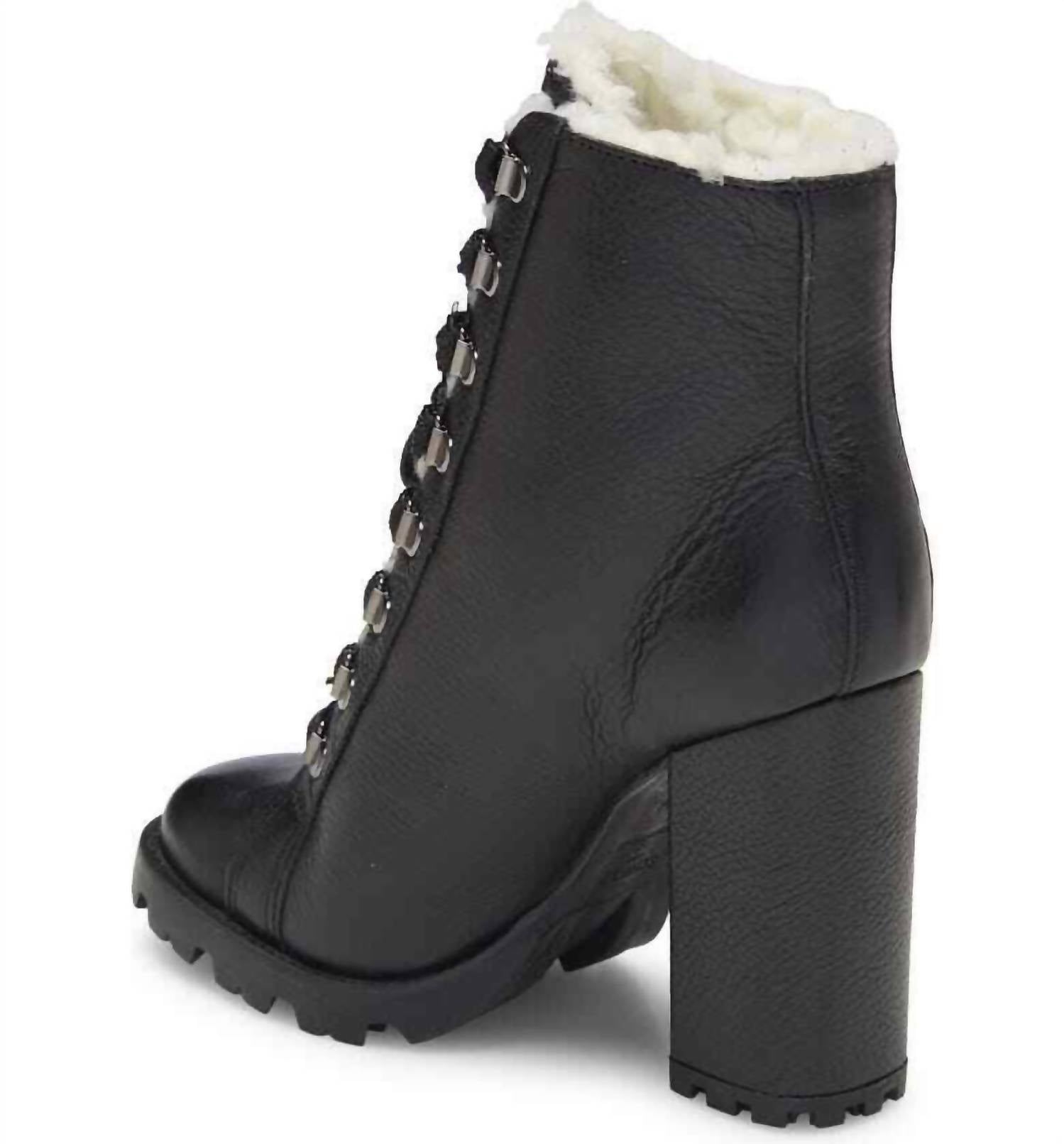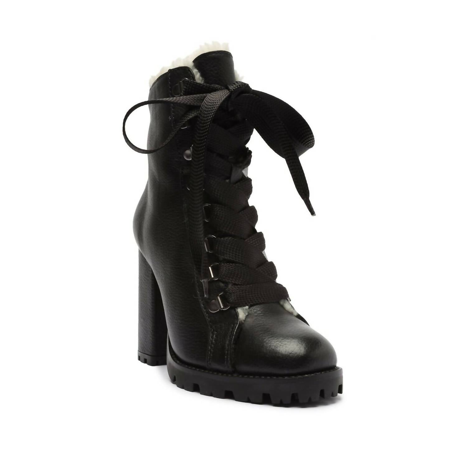 Schutz - Women Faux Fur Lining Lug Sole Winter Leather Booties