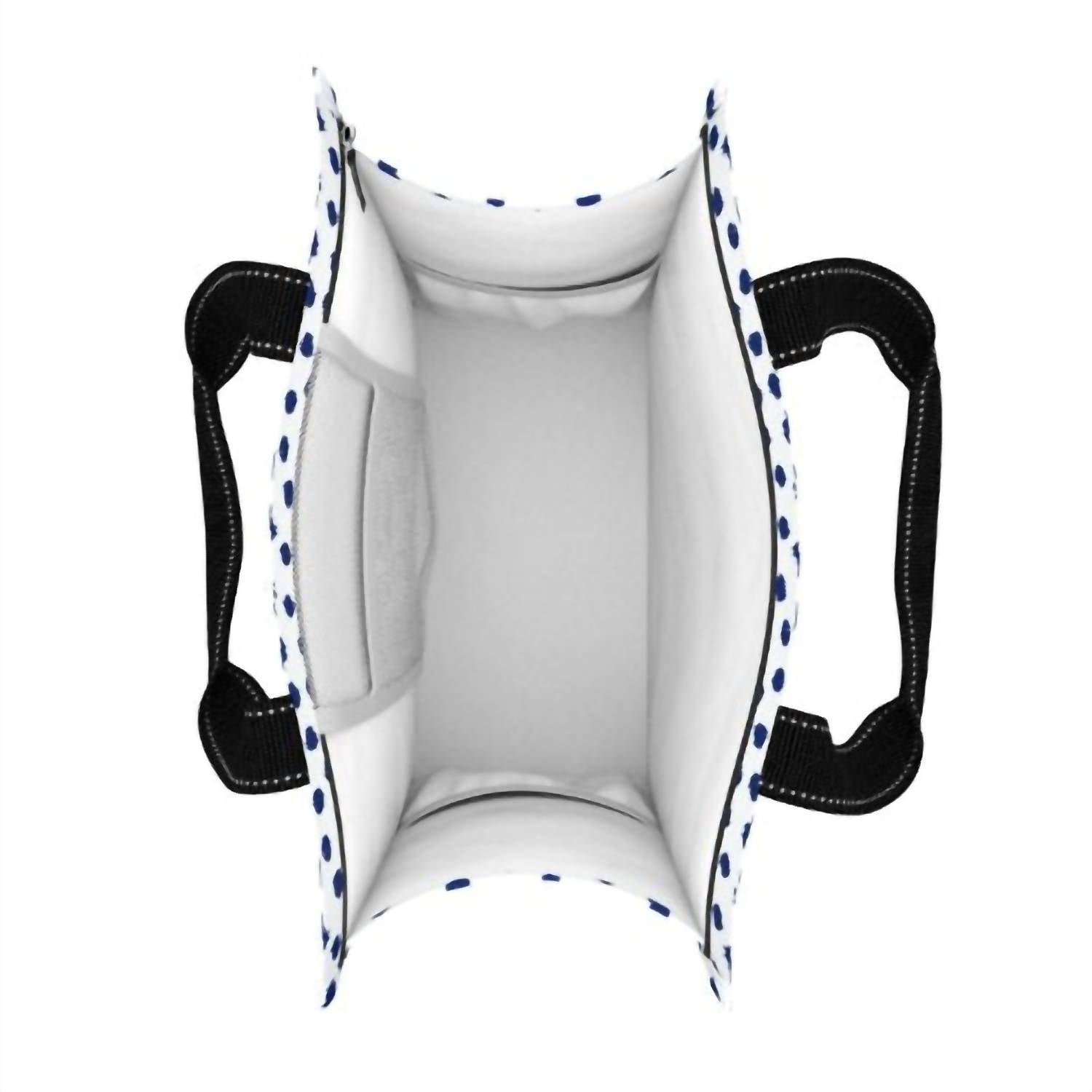 The carry-all tote bag of the season. Get in vacation mode with this perfectly sized tote bag that is the perfect accessory for beach days, pool parties, or sunset dinners. Introducing the Nice Ice Baby Cooler Bag by SCOUT, a stylish solution in the vibrant Pitter Splatter pattern. This tote is designed with functionality in mind, featuring three inside pockets for organizing snacks and a back pocket perfect for stashing essentials like changing mats. Its dimensions are 16.75" W x 13.25" H x 7.5" D, offering ample space for all your needs. Ideal for busy caregivers, this cooler bag is a must-have for managing on-the-go hunger pangs.