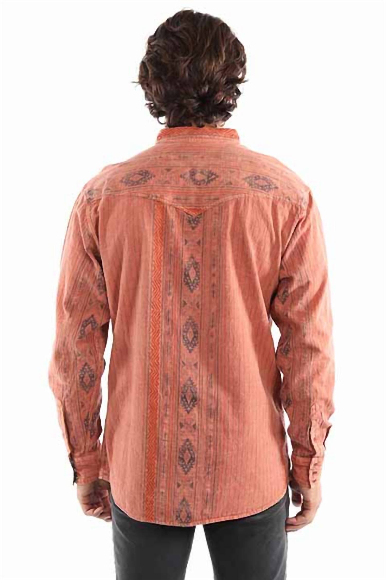 Introducing the Overdye Long Sleeve Shirt by Scully, a standout piece for any wardrobe with its distinct vintage appeal. Crafted from 100% cotton, this patterned shirt is enhanced by an overdyed jacquard finish coupled with a crack wash process, resulting in a truly unique color and texture. It features a snap front closure, two chest flap pockets with snap closures, and a point collar with contrast trim inside the front placket, inner collar, and cuffs. Conveniently machine washable and designed for summer holidays or a casual workwear look, this shirt is both stylish and practical.