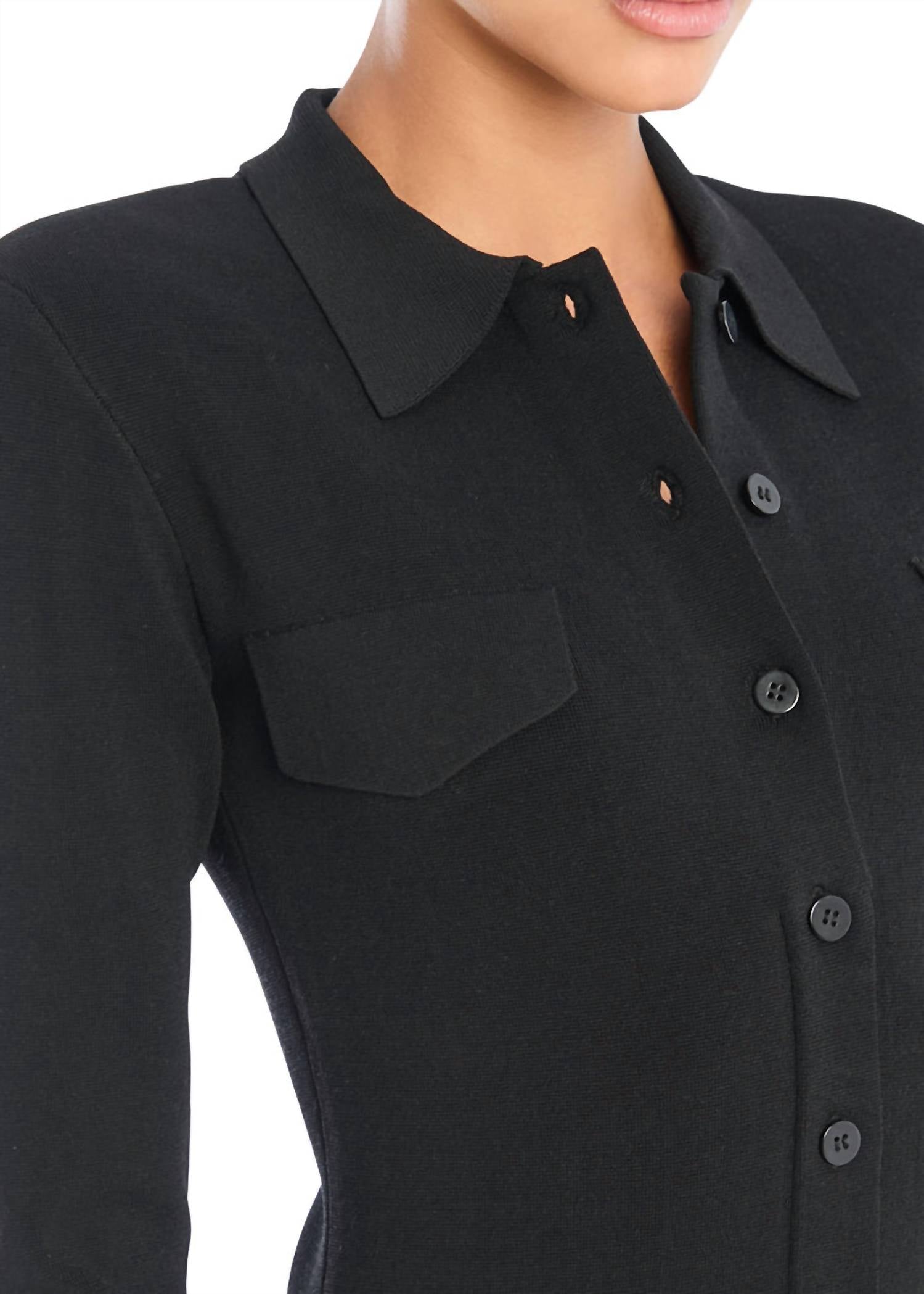 A flattering yet comfortable dress you'll be reaching for season after season. Discover the Youssra Mini Dress by SER.O.YA, a standout choice for evening events in elegant monochrome black. This dress features long sleeves and a collared neckline, complete with a button closure for a sophisticated look. Crafted from a viscose blend (62% Viscose, 23% Spandex, 15% Nylon), it offers style and comfort, while the practical chest pockets add functional flair. Made in China, care for this dress by hand washing and line drying. Model is 5'10" wearing a size S, Style No. S-FW25-5085-17.
