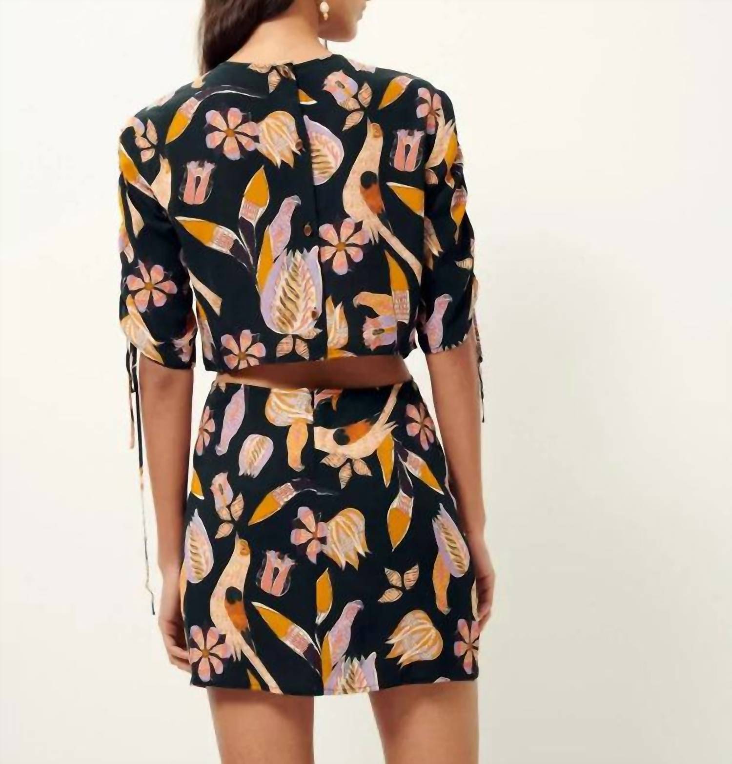 Cute and comfortable, this long sleeve dress has it all. The Angelica Mini Dress by Sessùn, in an exclusive Birdika pattern, is the ultimate floral creation for your summer wardrobe. This boho-chic piece features short, adjustable sleeves with drawstrings and an open back that adds a flirty touch. With a crewneck and a back closure that combines jewel buttons and an invisible zip, it ensures both elegance and practicality. Crafted in 100% viscose from sustainably managed wood sources, this A-line dress is designed with care in mind—simply machine wash and enjoy its enduring beauty.