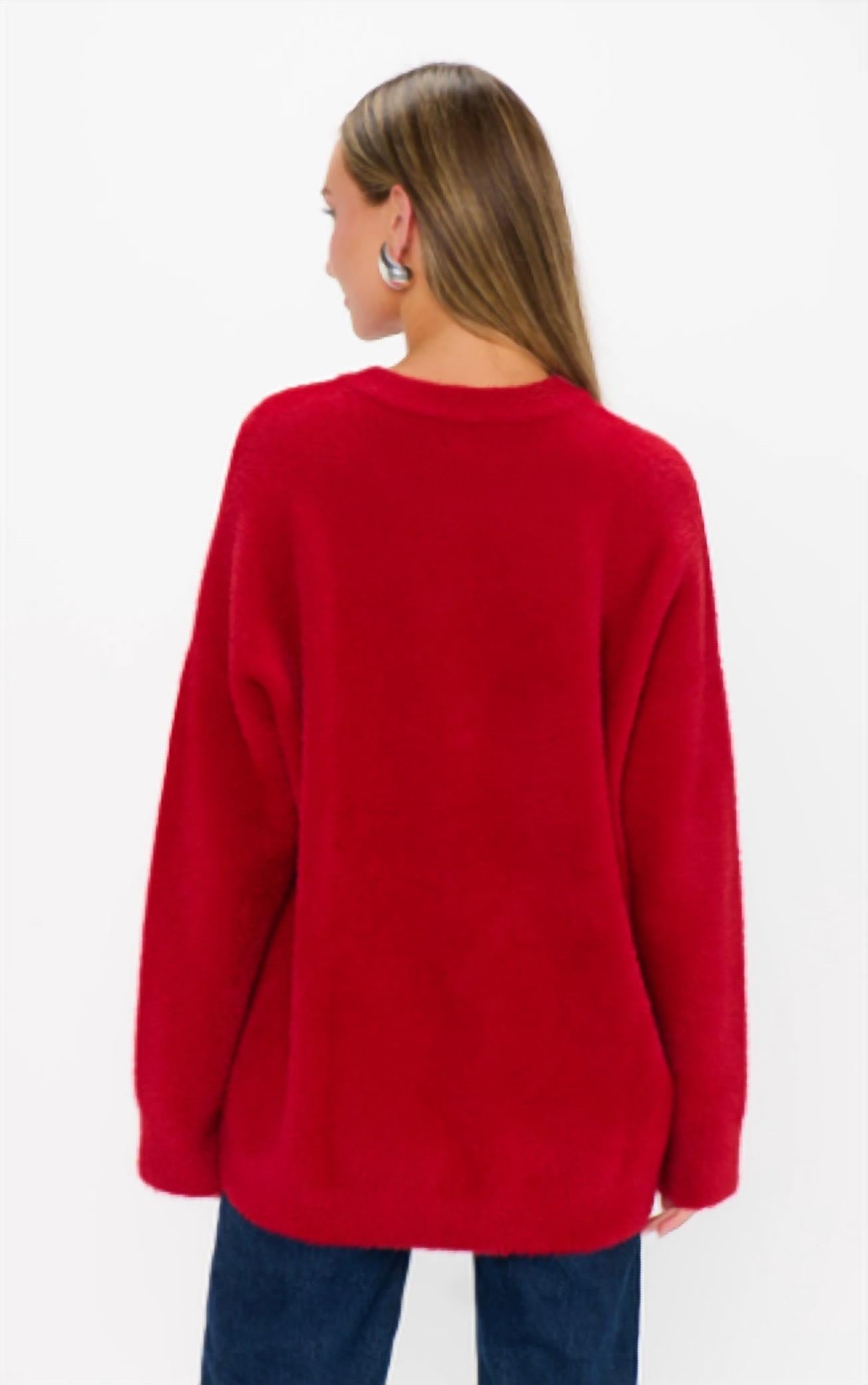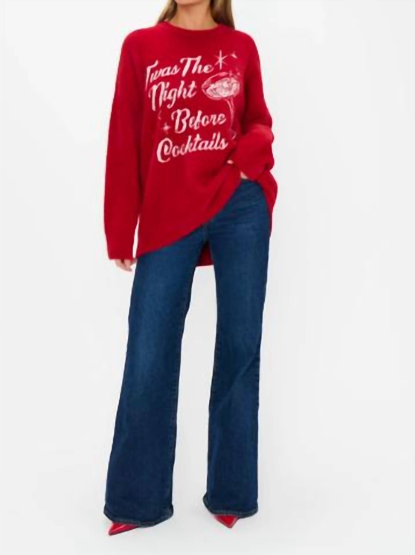 Stay warm and stylish in this versatile and effortlessly cool knitwear staple. Wear it alone or layered, it's the perfect sweater for the season and you'll wish you had it in every color. Say hello to festive flair with the Classic Crewneck Sweater from Show Me Your Mumu, crafted with a playful holiday graphic that sets the perfect tone for your celebrations. Designed with long sleeves and a convenient pull-on closure, this sweater offers comfort and style in a 65% Nylon and 35% Acrylic blend. Its cheeky design in the Twas The Night Knit colorway makes it a joyful standout for any occasion. Hand wash. Bri is 5'8" and wearing a size small.