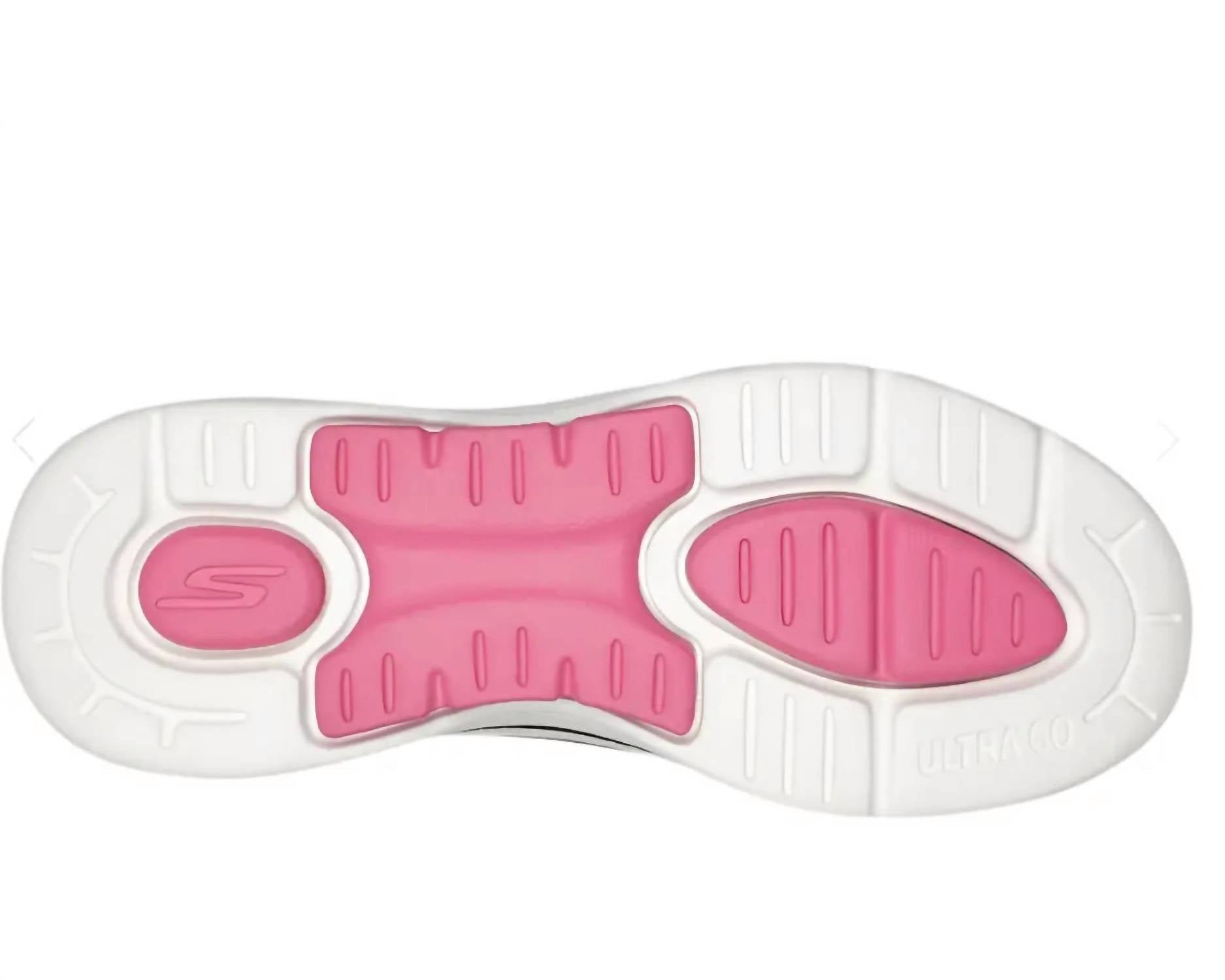 Cute, functional, and comfortable. These sneakers check all the boxes. Elevate your stride with the Women's Go Walk Arch Fit-Wild Energy Shoe by Skechers, offered in a striking black and hot pink. Designed with lightweight, durable materials for optimal all-day support, these sneakers feature the innovative Arch Fit technology for excellent cushioning and breathability. Perfect for athleisure enthusiasts, the style boasts a medium width and round toe shape, with a flat heel under 1" ideal for holiday parties and spring outings. For care, simply clean with a damp cloth and air dry to maintain the vibrant look and feel.