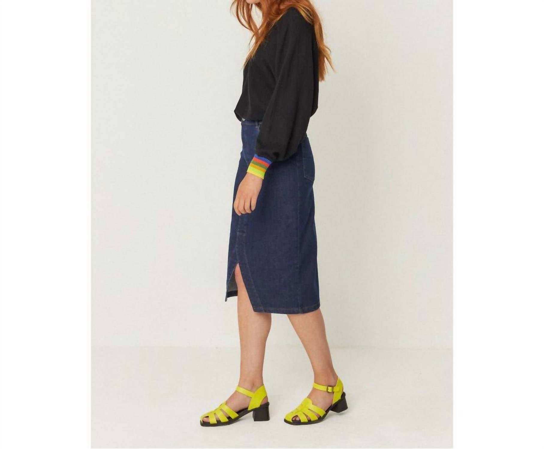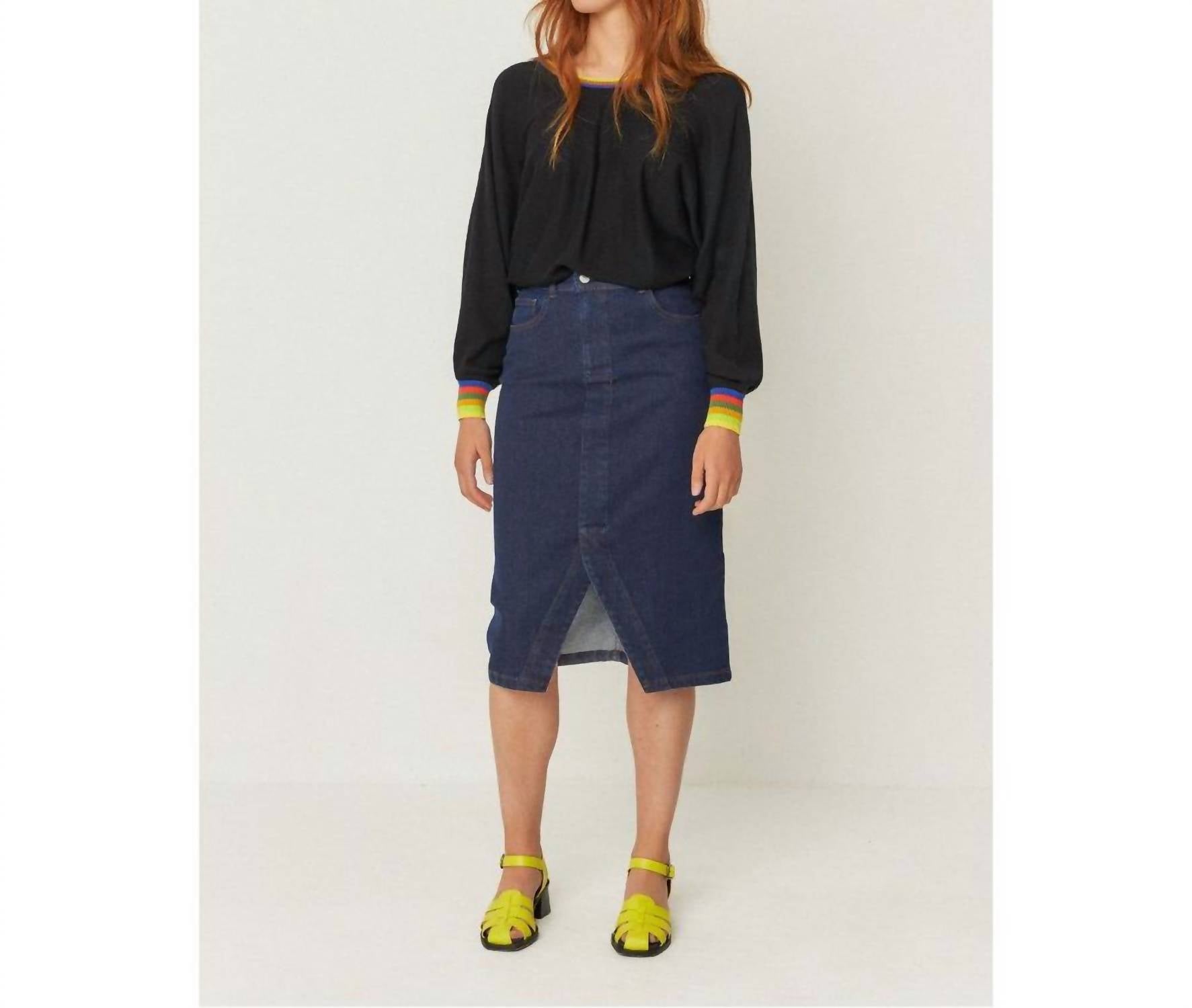Dress this pencil skirt up with a blazer or down with your favorite tee. So versatile and timeless. The SKFK Aintzane Pencil Skirt is a refined piece crafted in Spain, combining sustainability with timeless style. Featuring a mid-length design and a playful front slit, it offers both elegance and ease of movement. The skirt is composed of 62% organic cotton, 29% recycled cotton, 7% elastomultiester, and 2% elastane, ensuring comfort and flexibility. It closes with a chic button and offers practical back patch pockets, finished with a machine-washable guarantee for your convenience.