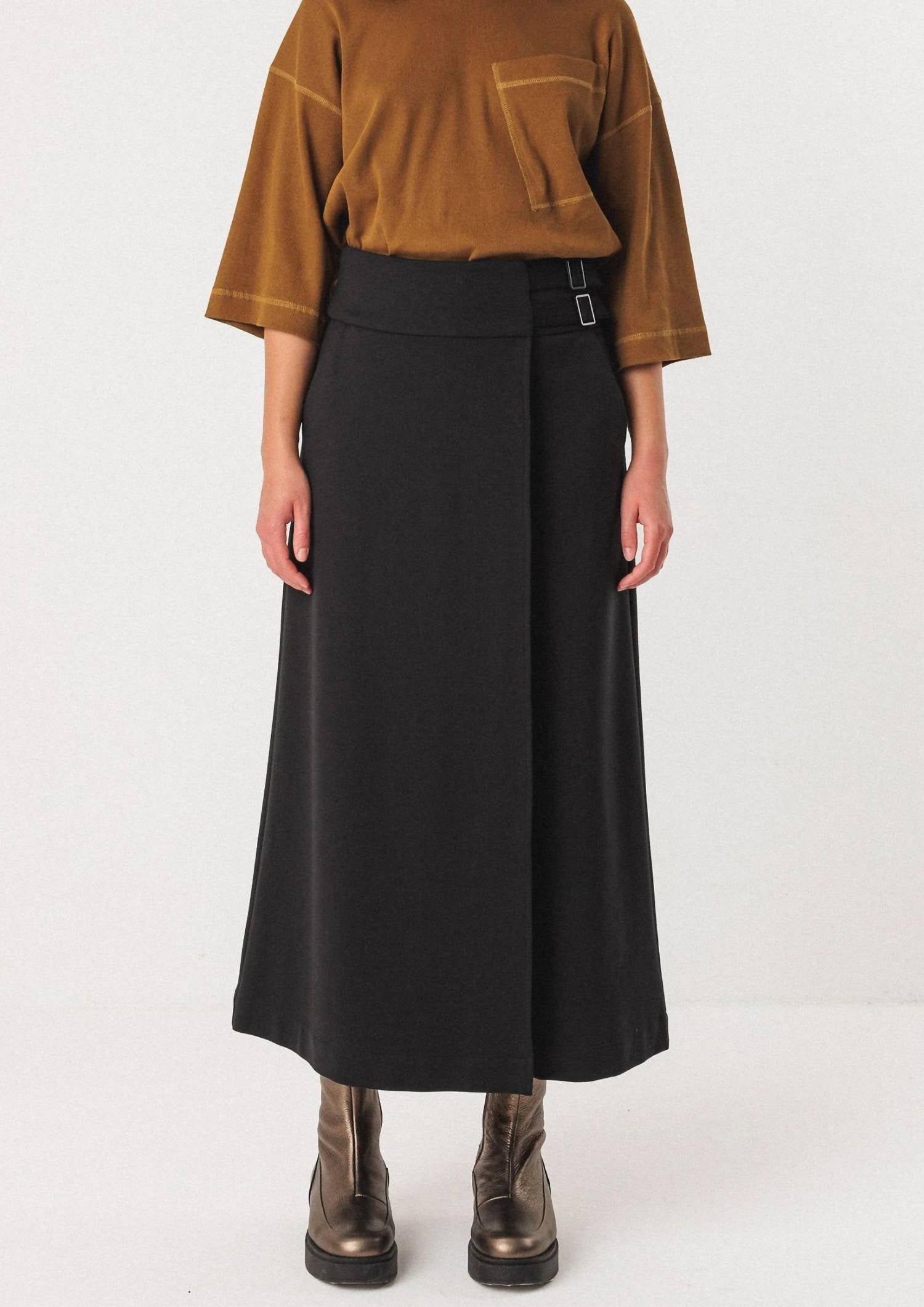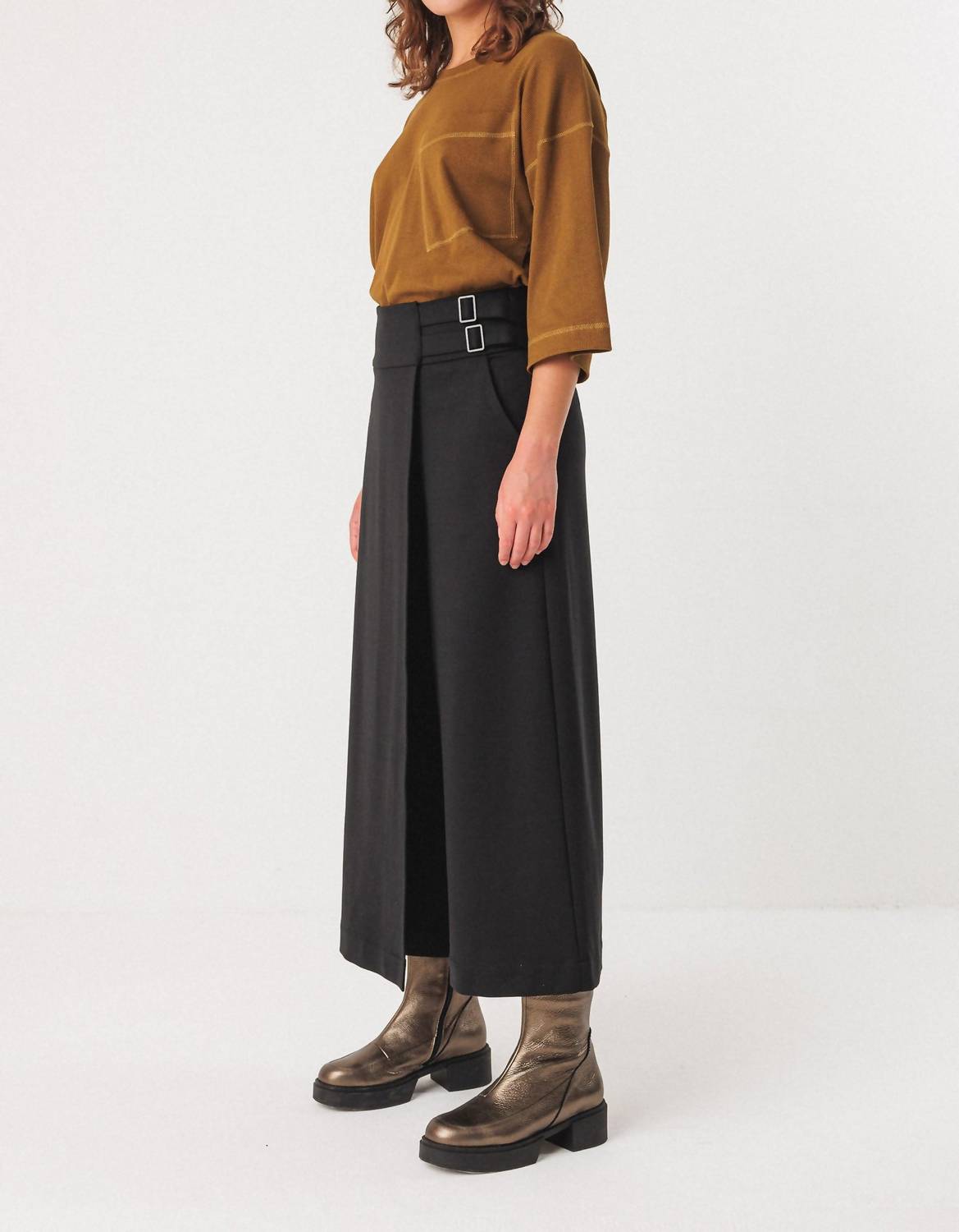 Elevate your evening ensemble with SKFK's Araika Trouser, a chic addition to any spring wardrobe. These wide-leg, ankle-high culottes in solid black feature a relaxed fit complete with a stylish draped design and two rectangular buckles. Crafted for modern sophistication, they include a functional zip closure at the front. To maintain their tailored elegance, please dry clean only.